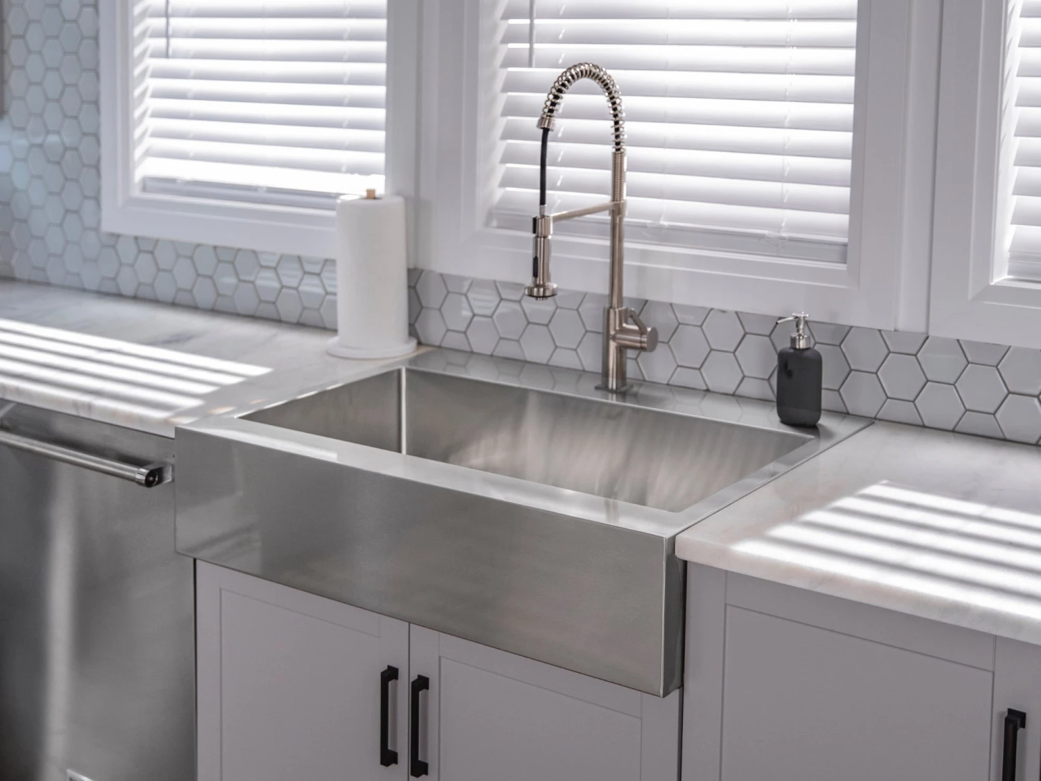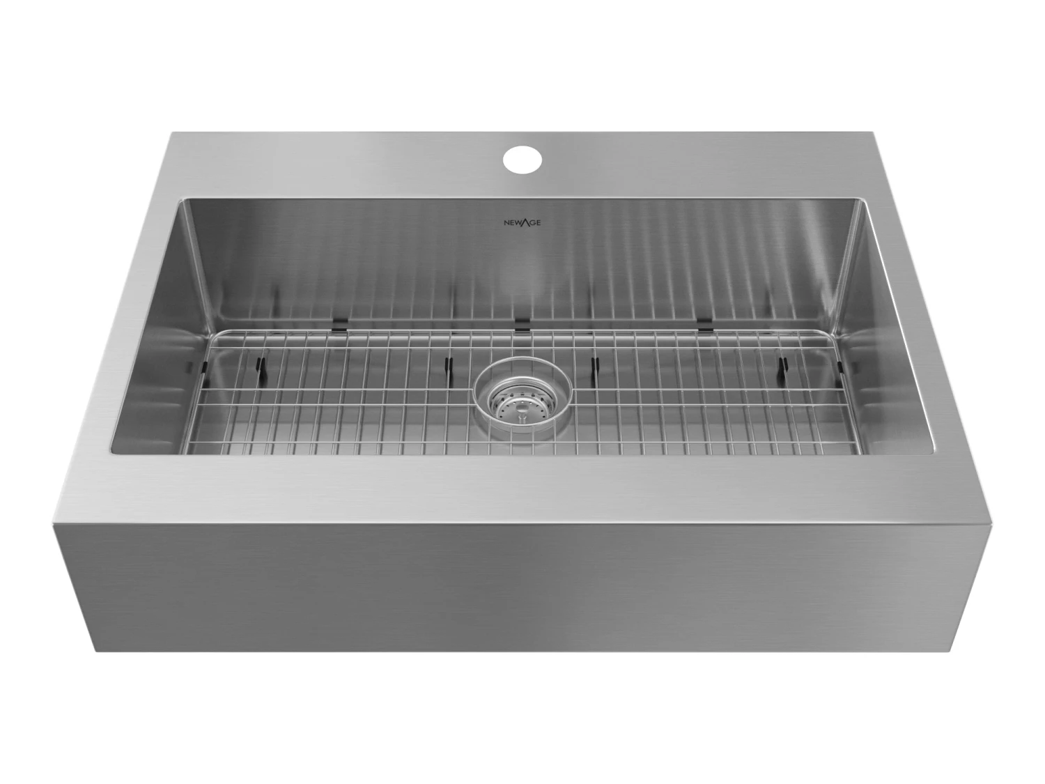 Timeless and traditional, a Farmhouse sink will never go out of style. Our 36″ farmhouse sink pairs seamlessly with our kitchen cabinets, dropping down neatly and easily despite the large size. Sleek in design but with a robust stainless steel construction, this sink is a long lasting investment, drawing the eye in both contemporary and traditional style kitchens with its bold look and satin finish. Corrosion resistant, sound dampening and heat resistant, this sink makes tough washing up jobs easy. Pots and pans can be placed in the sink even while still hot, and the tough surface can easily withstand a dropped pan, while a bottom grid is included for added protection. Corrosion resistant, sound dampening and heat resistant, the end of the day clean up will soon be a fuss-free experience.