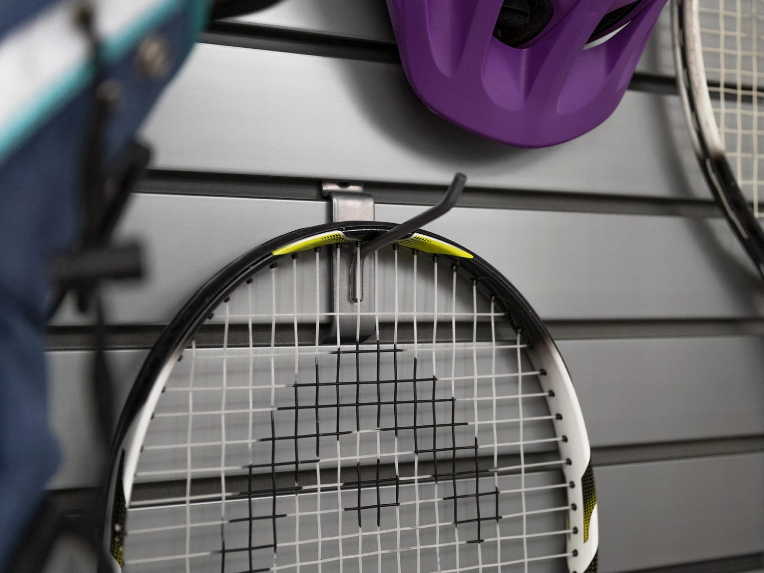 Maximize your slatwall system with NewAge Products Slatwall Accessories. Designed for use with NewAge Products Steel and PVC Slatwall systems, and compatible with most 3 in. on-center slatwall systems, our snap-in Slatwall Accessories are built with steel for extra strength. The powder-coat silver gloss finish looks great in any space and on both silver and black slatwall solutions. The 4 in. Single Hooks are great for storing small gardening tools like trowels, forks and pruning shears.
