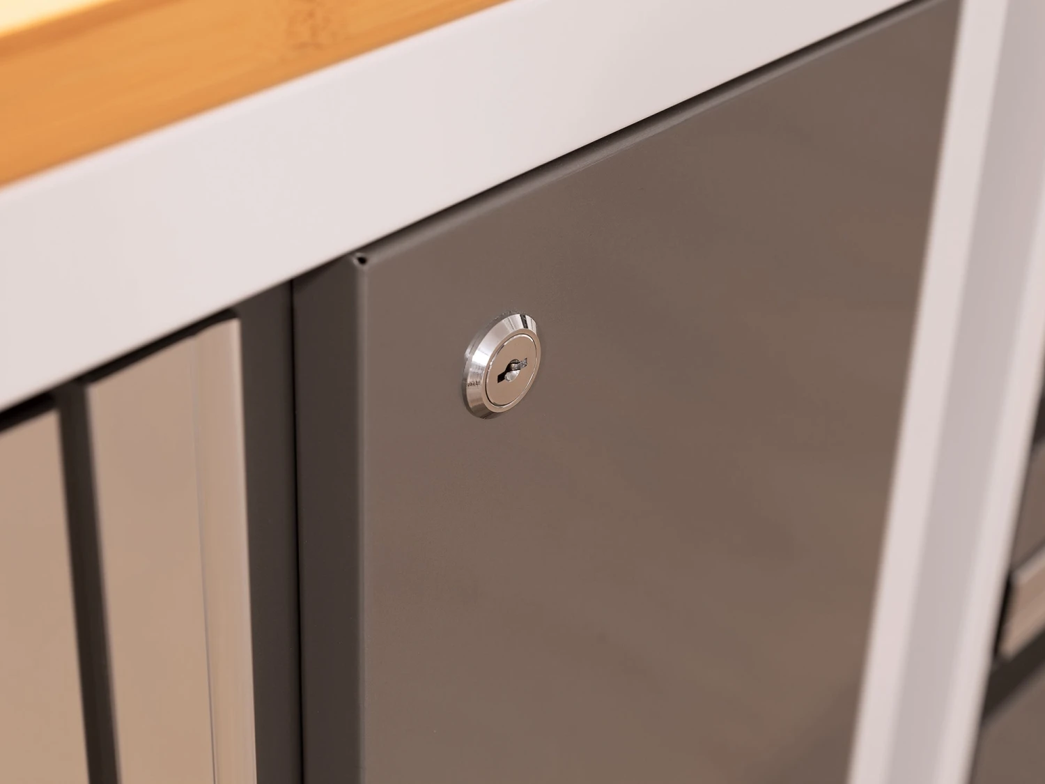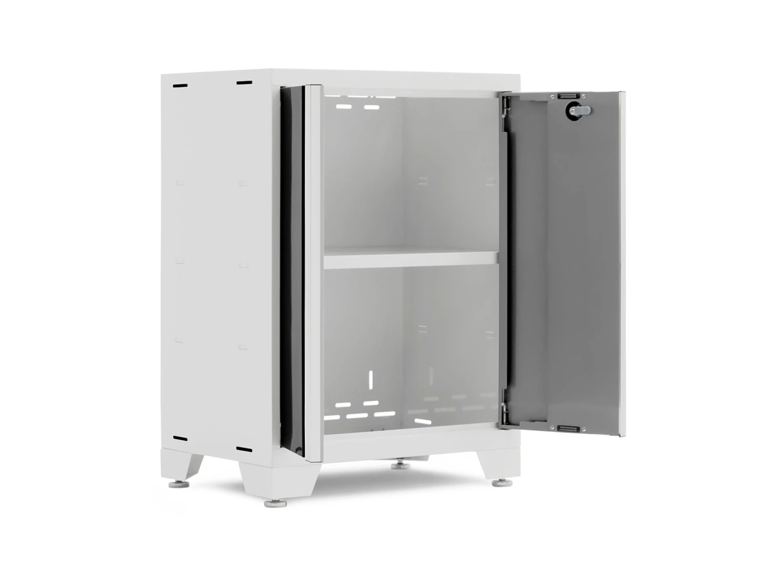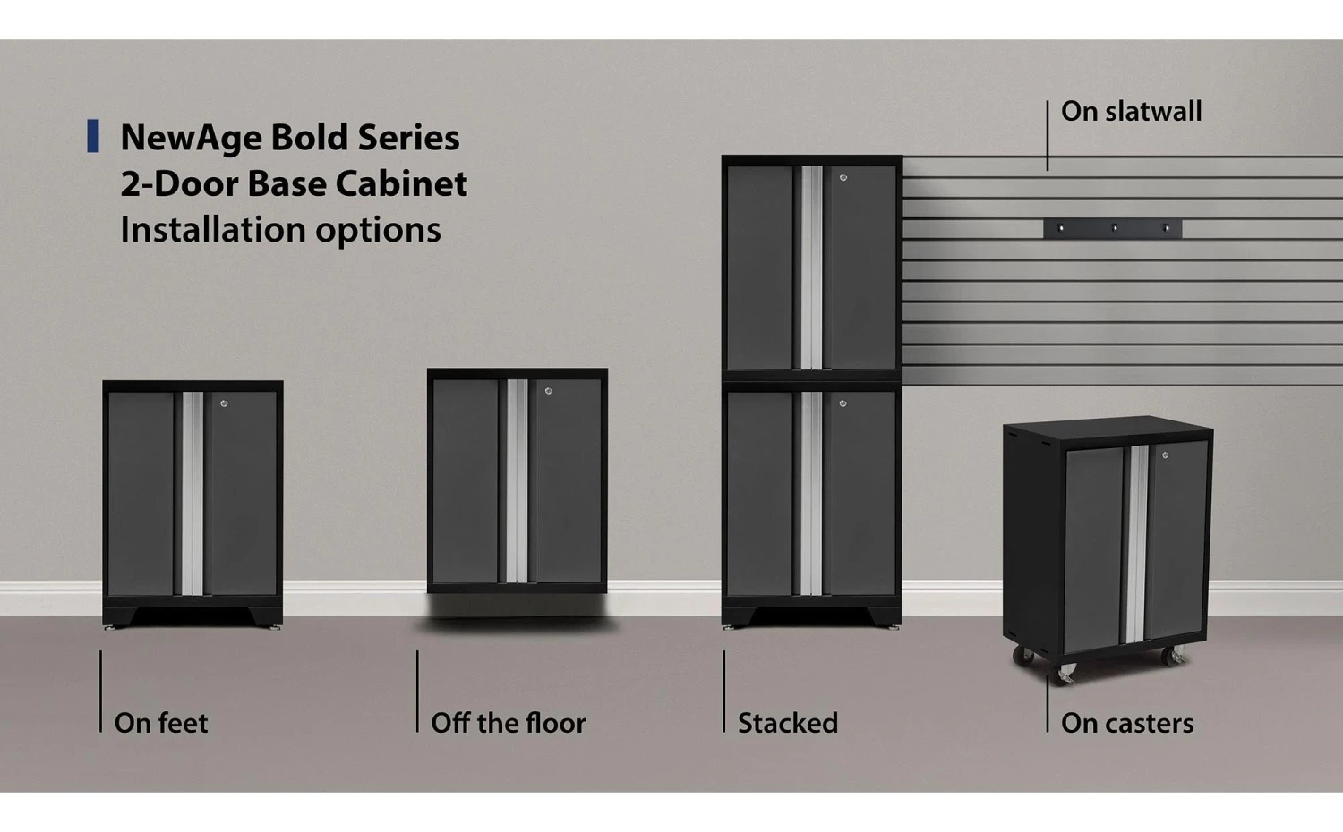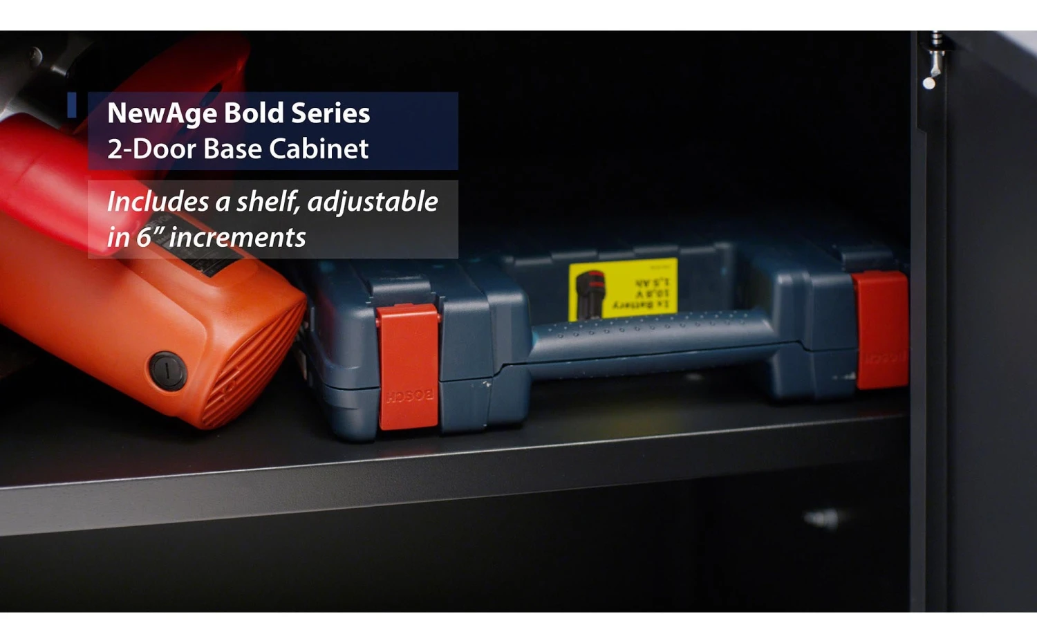 Designed to make a big statement in garages, workshops, mudrooms and other areas of your home, the Bold Series cabinet system instantly upgrades the look of your space, providing you with organized storage for all your belongings. Built with heavy-duty 24-gauge steel for added strength, these cabinets are ready to hold everything from sports equipment to gardening tools, and the scratch and stain resistant powder-coat paint finish protects the cabinets from everyday heavy use. Full-length integrated handles allow you to quickly and easily access your gear, and adjustable steel shelves give you the flexibility to store items of all sizes, while fully-lockable doors ensure that your tools stay safe. Get organized, and simplify your life, with Bold Series Garage Cabinets.