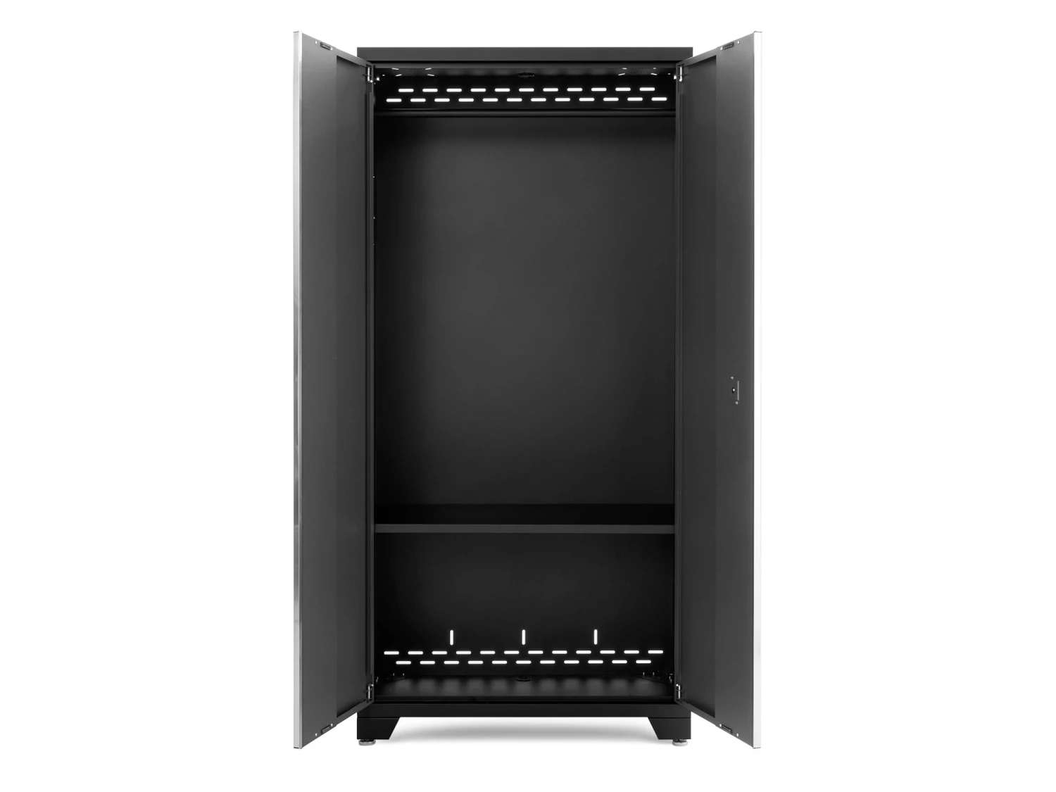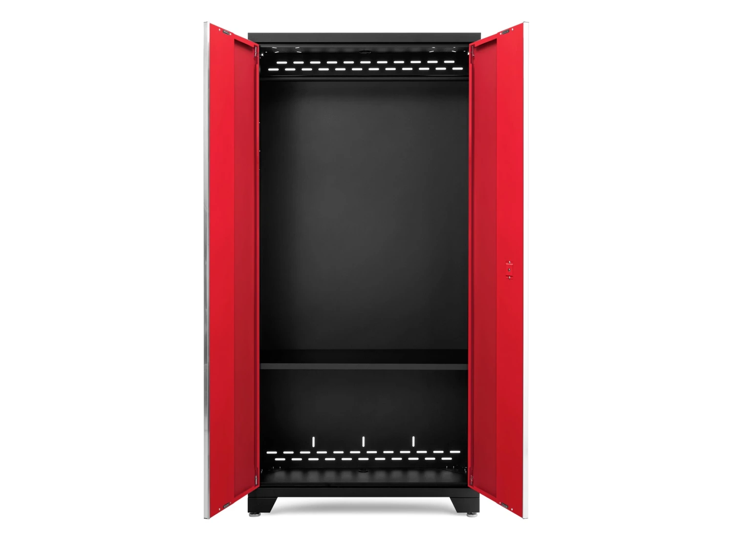 The Bold Series 36 In. Multi-Use Locker instantly upgrades the look of your garage, workshop, mudroom or other space with the versatile storage solution you need to organize just about anything. Built with welded steel frames and fully-lockable doors, these lockers provide spacious, secure storage for everything from sports equipment and power tools to gardening supplies. The durable powder-coat paint finish not only looks great, but also improves the corrosion resistance of the cabinet and stands up to the demands of everyday use. Integrated vents improve air flow to help to dry and air out sports equipment like football pads and hockey gear. Easily attach your own fan or filter onto the vents to further improve air circulation. Full-length integrated handles allow quick access to stored items and adjustable steel shelves give you the flexibility to organize objects in a variety of sizes. Take control and organize in style with the Bold Series 36 In. Multi-Use Locker.