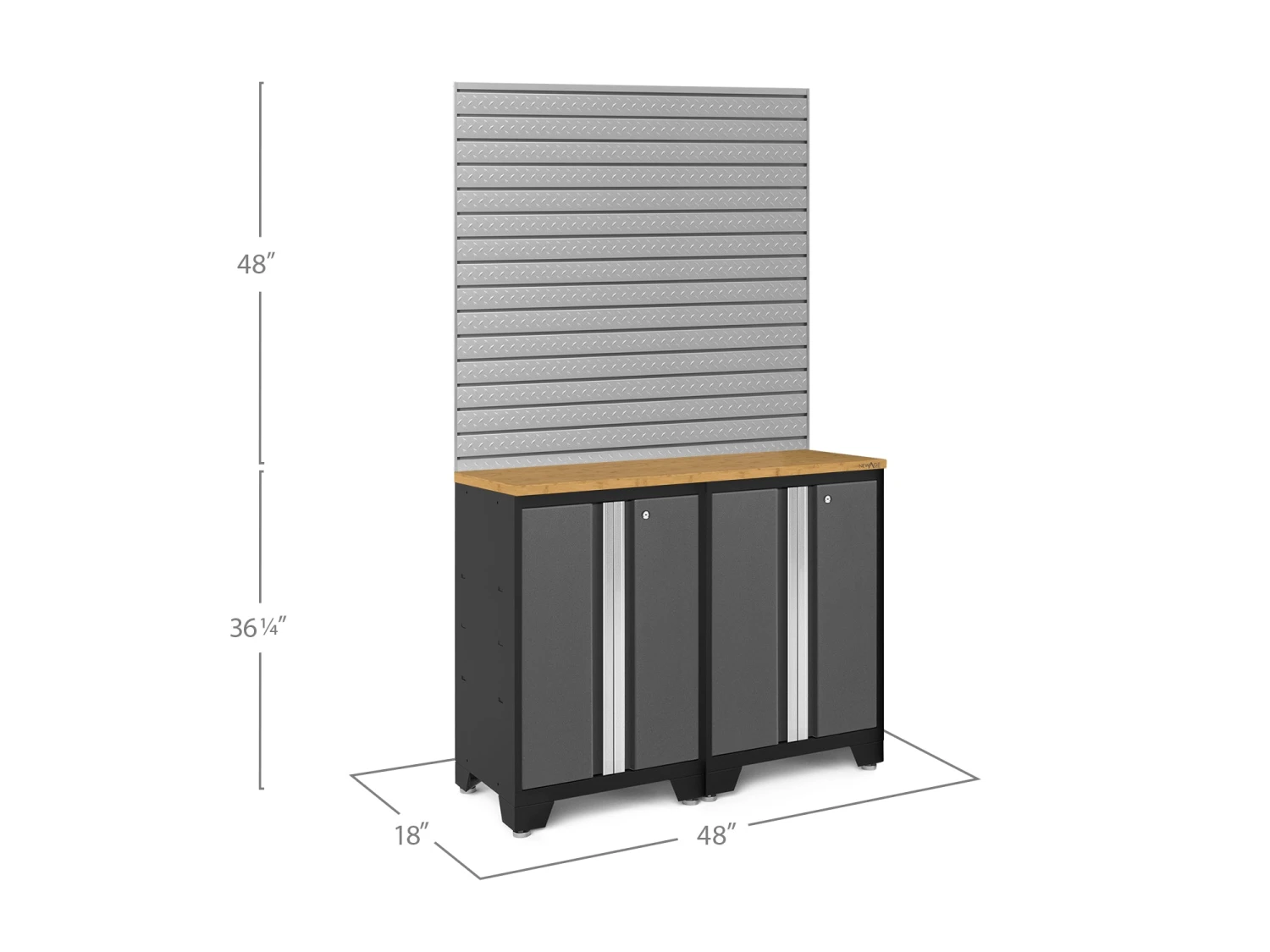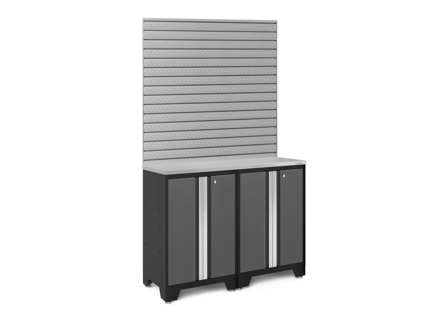 Upgrade the look and organization of your garage with Bold Series 3.0 Cabinetry. Built with heavy-duty steel frames for extra-strength, these cabinets are ideal for storing sports equipment, seasonal decor and tools. The powder-coat paint finish gives protection against scratches and rusting, making the cabinets perfect for rugged use. Full-length aluminum handles let you easily access your gear, with lockable doors to keep items secure. Full-extension drawers and adjustable shelves give you the customizable space to store items of all sizes. The diamond plate pattern Slatwall Kit includes two 2 ft. x 4 ft. panels that can be installed vertically for a stacked wall configuration, horizontally for a long length of tool storage, or on separate walls for area-specific organization. Get organized and improve the functionality of your garage, with a Bold Series 3.0 Cabinet System.