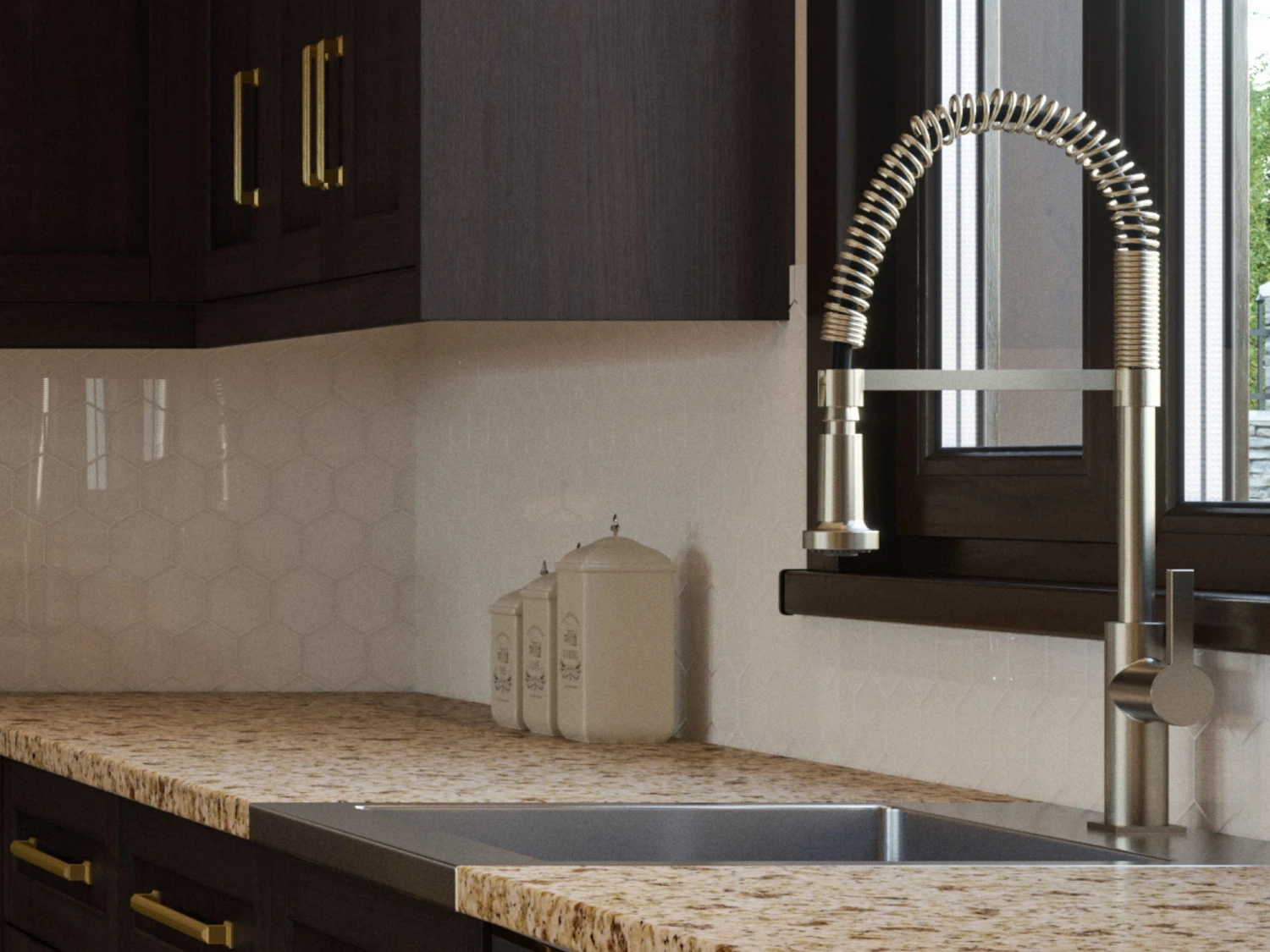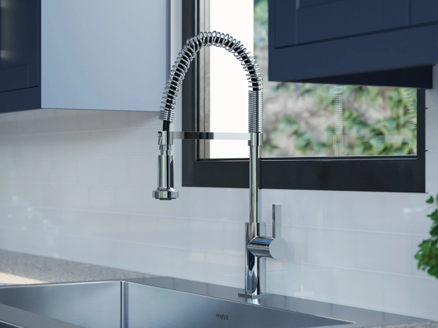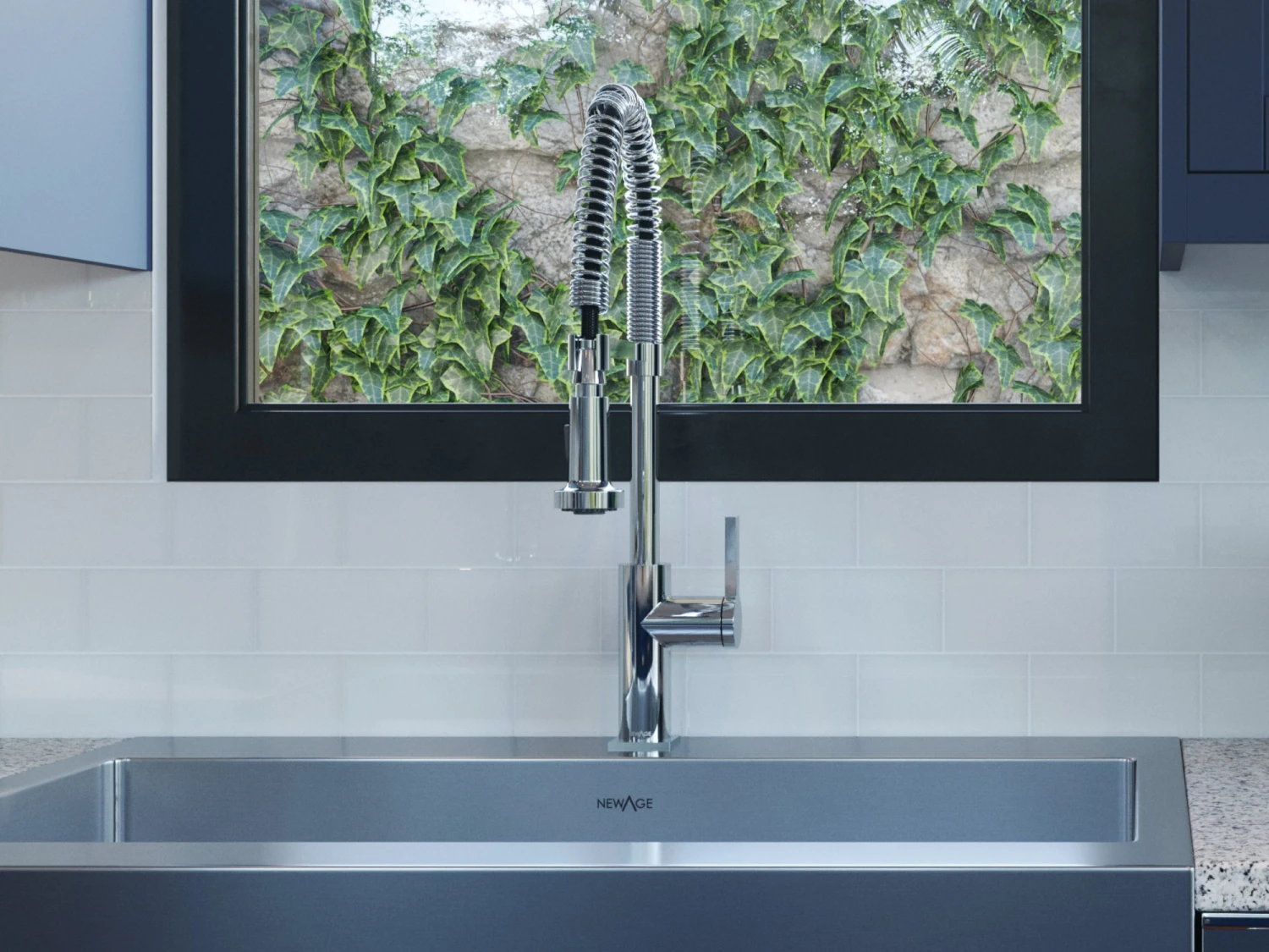 Bright, contemporary, and with a smooth professional finish, the Coiled Pull-Down Faucet looks stunning in large kitchens. With the functionality of a commercial faucet, coupled with the charm of a domestic design, this is a practical and aesthetic addition to any kitchen. Both the brushed nickel and chrome finish perfectly complement our Farmhouse and Standard sinks. Made from lead-free brass, this faucet is built with durability in mind. The sleek coiled design allows for maximum flexibility and control, whether you’re washing dishes or preparing food, while the 360 degree swivel spout, advanced spray and pull out wand ensure no corner of your sink is left unreached. The high spout makes it easy to wash and clean large pots and pans, while the 1.5gpl flow rate makes light work of stubborn stains.