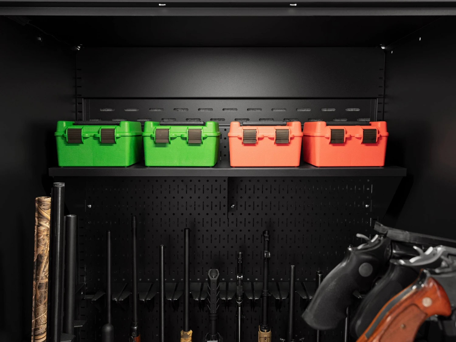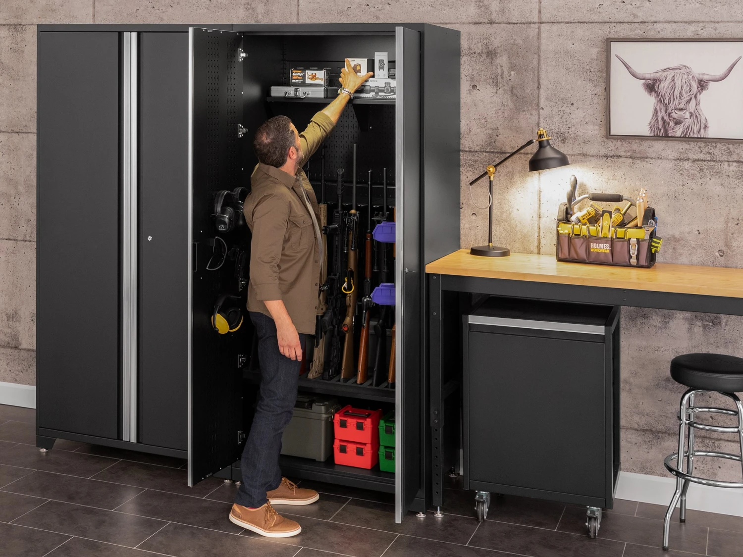 The NewAge Products Pegboard 34 in. Shelf is the perfect accessory for your Secure Gun Cabinet, as well as most pegboard storage solutions. Constructed from heavy-duty steel, the shelf can hold up to 100 lbs. of weight. The durable powder-coat paint finish is available in colors specifically matched to NewAge Products cabinetry. The shelf is easily assembled using self tapping screws.