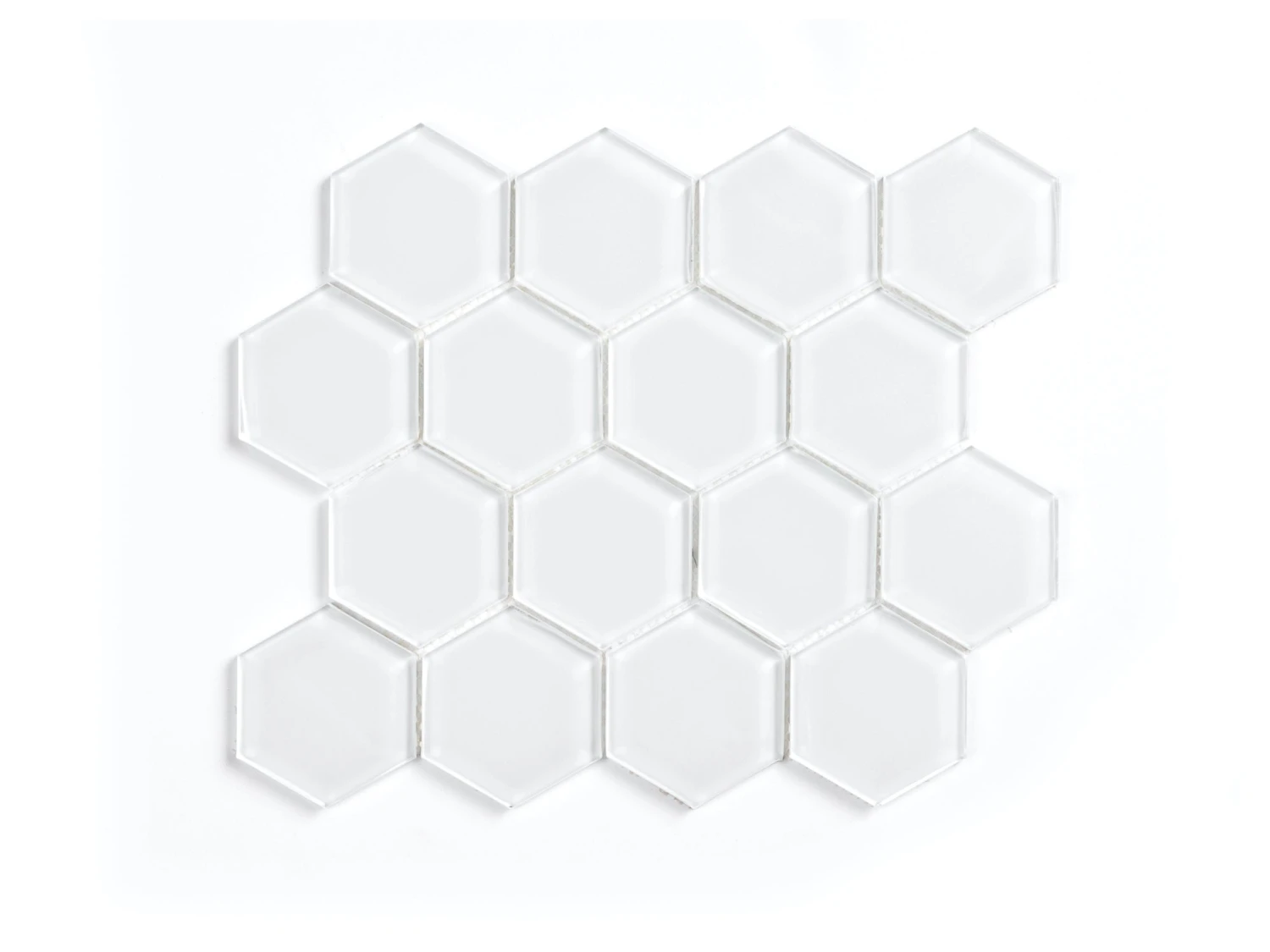 The Super White Glass Hexagon Tiles will beautifully line the walls of your kitchen, decorating and protecting the area underneath and above your cabinets. Easy to install and clean, these are a fuss-free flourish, with the unique hexagon design gracing both contemporary and traditionally designed kitchens. Created using low temperatures to ensure the bright white back coating travels through the clear glass, these backsplash tiles will brighten the room, giving the illusion of more space in smaller kitchens. They can be used in kitchens, bathrooms or even around fireplaces, and they’re easy to install regardless of the size, shape and layout of the room.