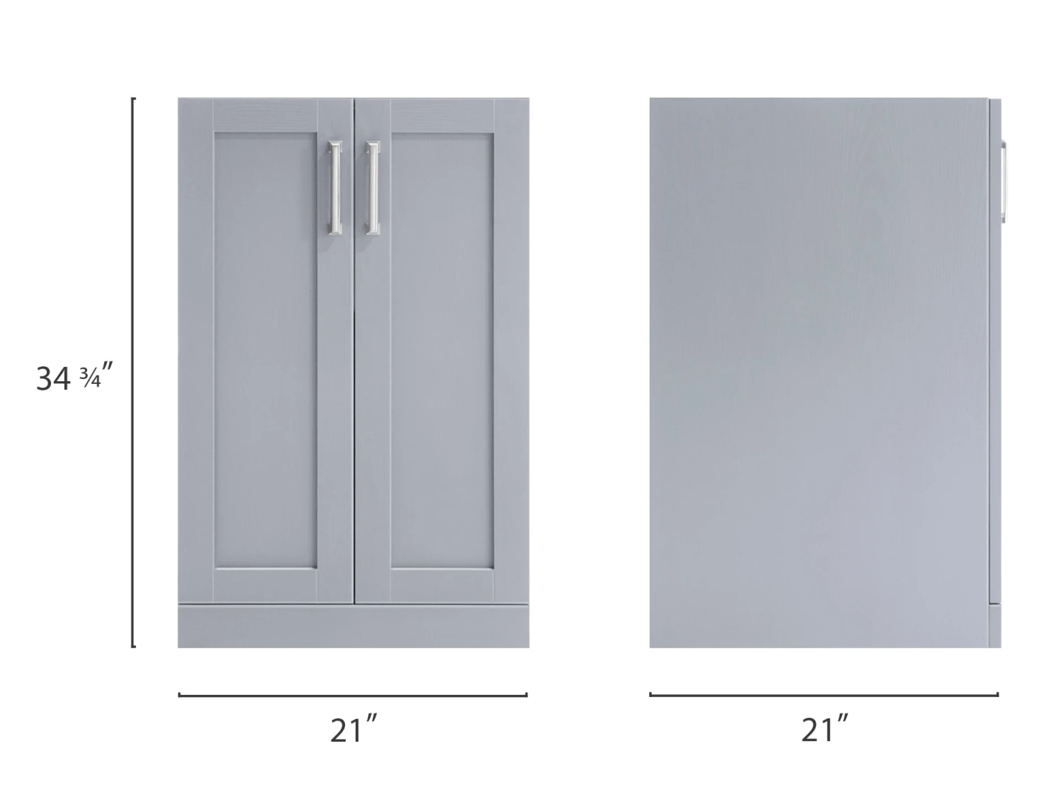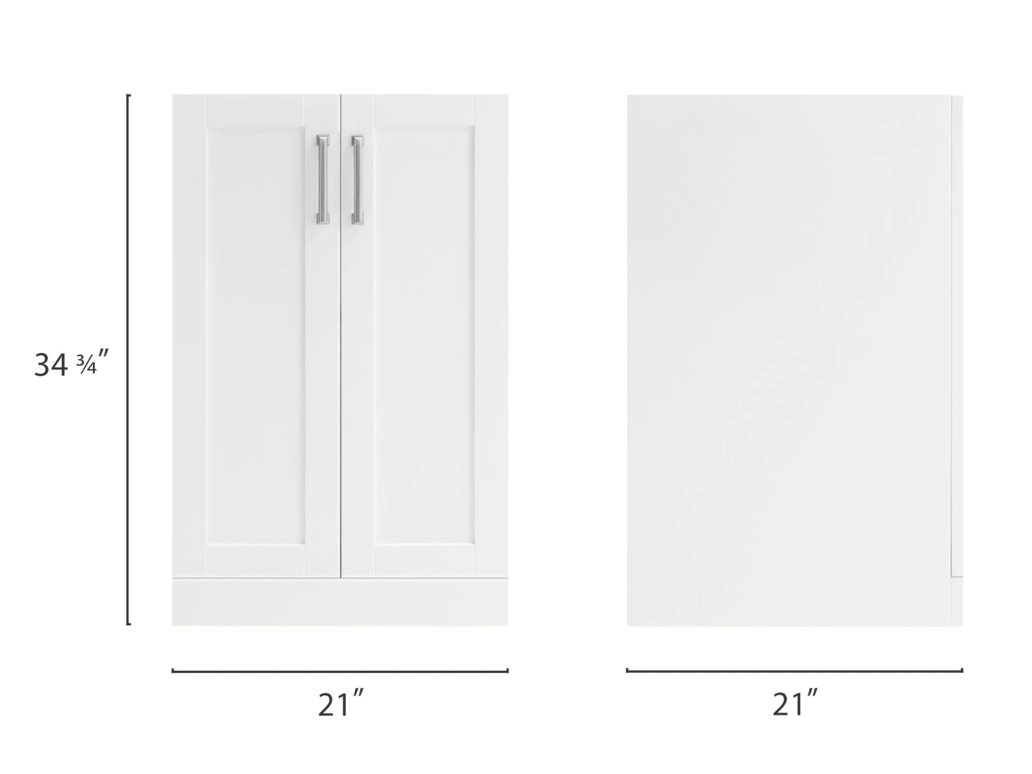 Stay organized and declutter your space with the Home Bar Series 21 in. 2-Door Cabinet, featuring two doors with integrated European soft-close hinges to prevent unwanted slamming. Designed with storage in mind, an adjustable shelf inside gives you the flexibility to store seasonal items, decorative pieces and bar accessories to free up counter space and keep them at the ready. The Home Bar Series 21 in. cabinetry is available in a variety of colors to suit any room in your home with a stain-resistant melamine finish to protect from scratches and spills. Nickel-plated handles feature subtle details that accent the classic shaker-style doors and drawers. Free up more space and store more items with the Home Bar Series 21 in. 2-Door Cabinet.