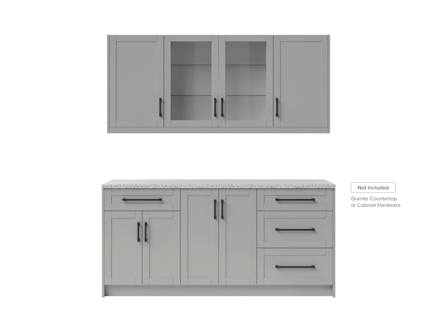 Entertain with flair and enjoy stylish, versatile function in any room with a modular home bar cabinet set. Each fully-assembled set provides convenient storage in a sleek, space-saving profile. Customize with your choice of granite countertops, handles and premium trim. It is the perfect place to keep serving sets, placemats, tablecloths, and decorations along with glassware and other entertaining essentials. Full-extension drawers feature premium, soft-close hinges. Thick 18mm frame construction delivers outstanding durability beneath an easy-clean surface. Available in your choice of white or gray matte finishes to complement any décor. Cabinet organization accessories sold separately.