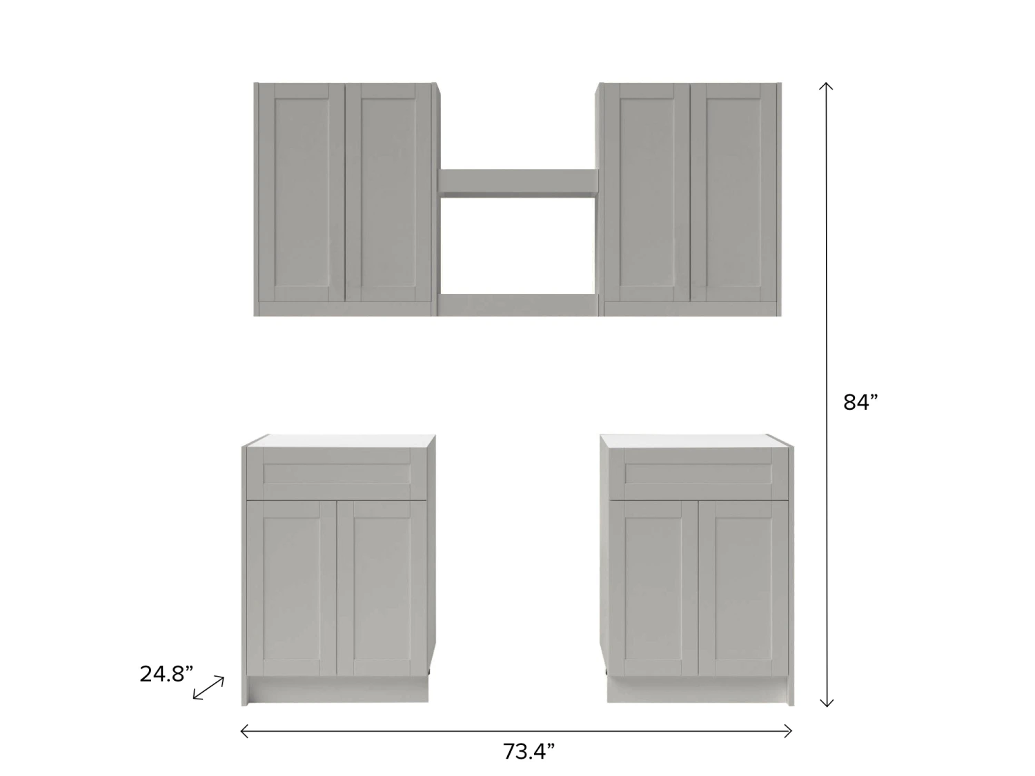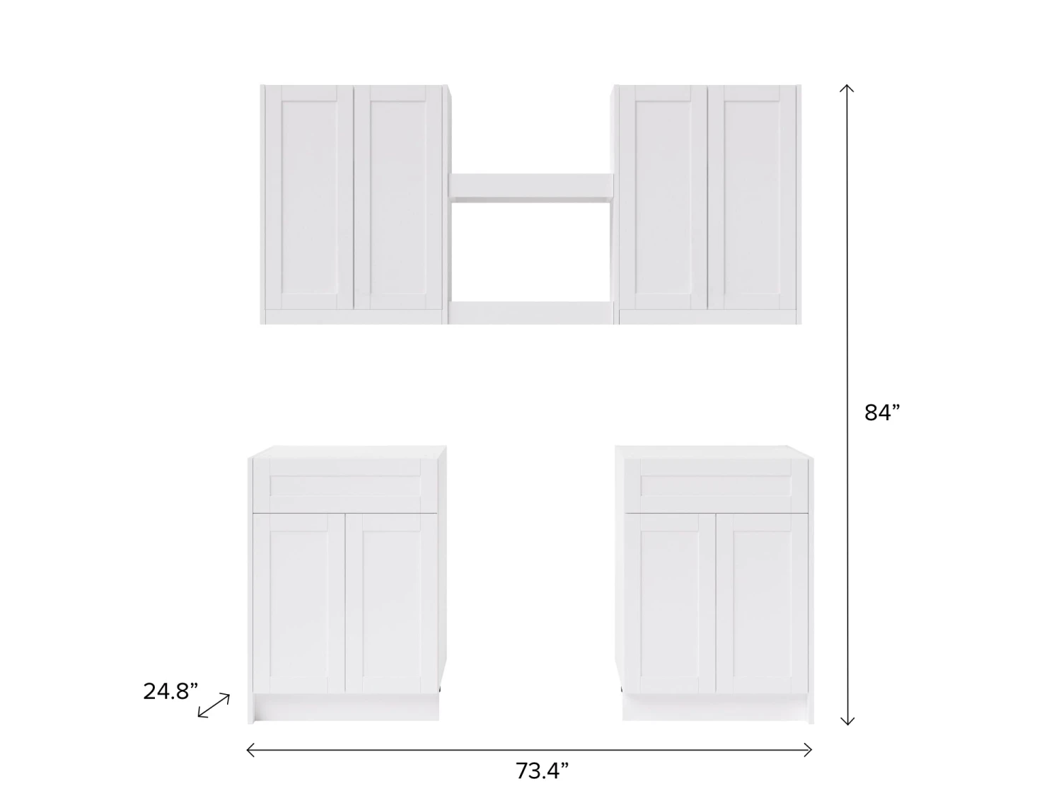 73.4 in. W x 24.8 in. D x 84 in. H