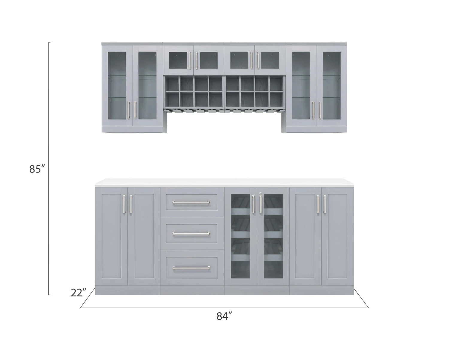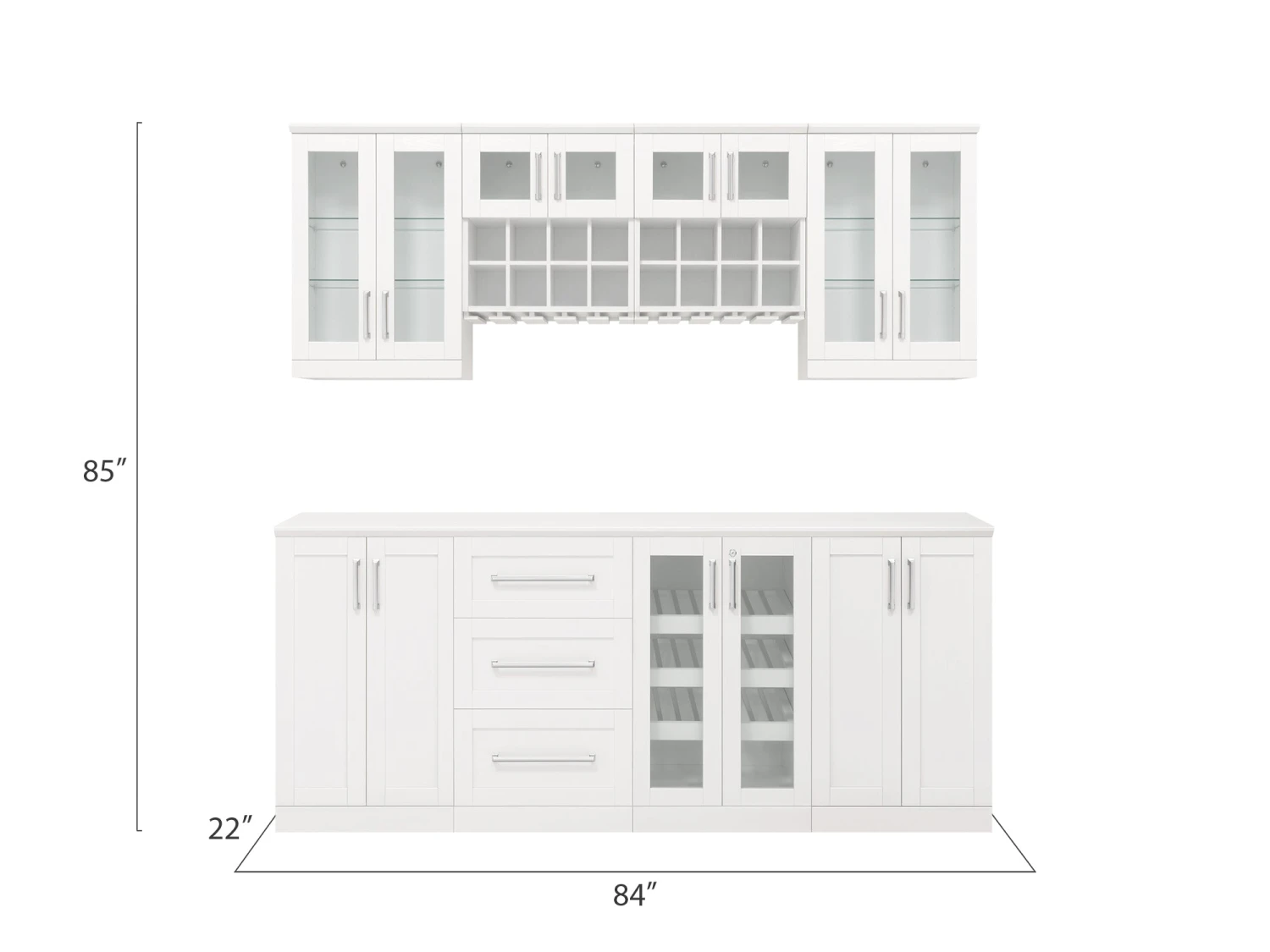 84 in. W x 22 in. D x 85 in. H