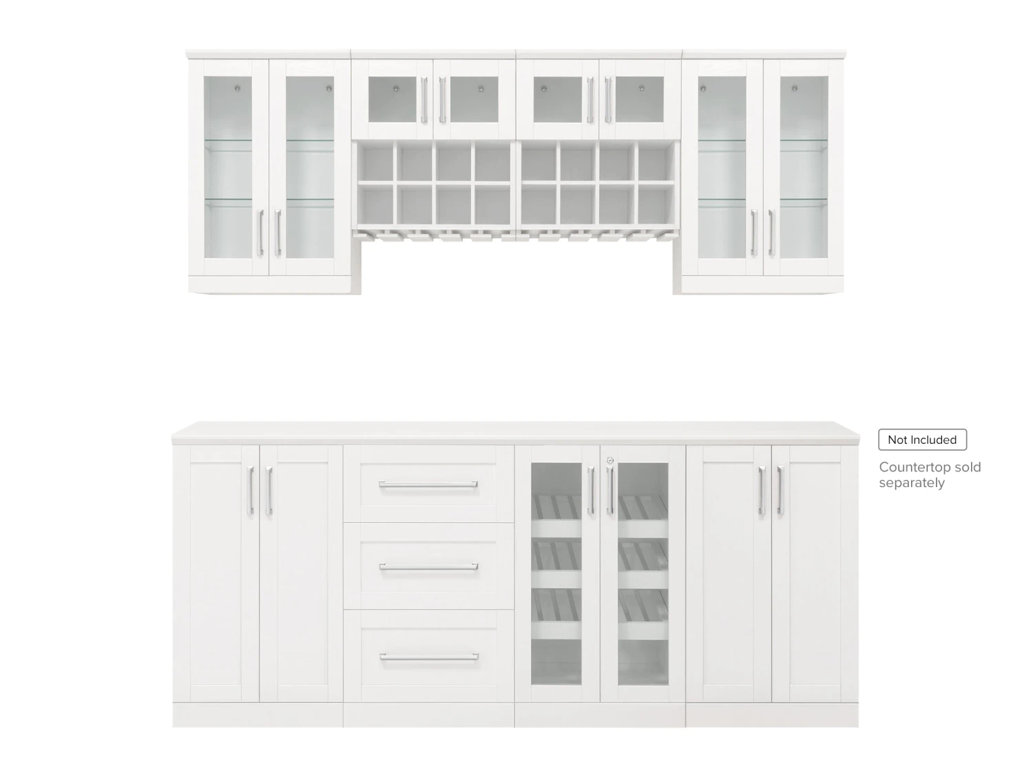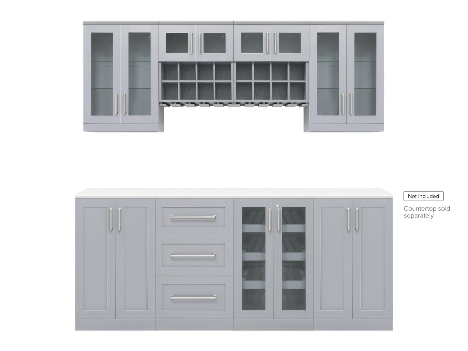 - Doors and drawers feature premium soft-close hardware