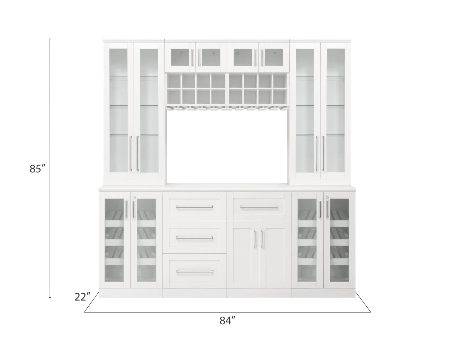 84 in. W x 22 in. D x 85 in. H