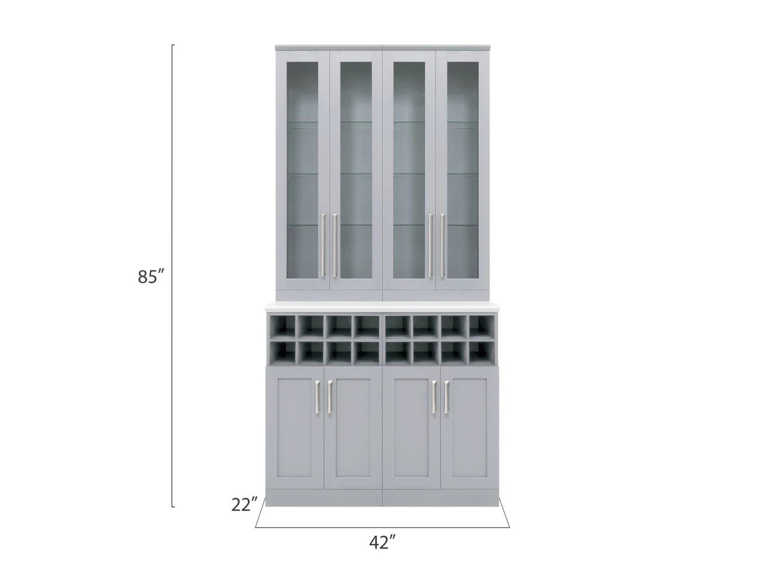 Make the most of any space with the Home Bar Series 21 in. cabinetry. Whether you’re a wine enthusiast looking for a place to showcase your vintages, or a homeowner seeking more storage, these cabinets combine its sleek size with functionality. The Tall Wall Display Cabinet includes 3 adjustable tempered glass shelves that provide a bright cabinet interior for storing items of all sizes. An essential accent piece in any room, these cabinets are built with a solid plywood core, with full-extension drawers. Soft-close hinges prevents slamming and protect your valuables. The Home Bar Series 21 in. cabinetry is available in a variety of colors to suit any room in your home with a stain-resistant melamine finish to protect from scratches and spills. Nickel-plated handles feature simple lines and subtle details that accent the classic shaker-style doors and drawers. For effortless entertaining and intelligent storage, the Home Bar Series 21 in. cabinetry serve as an accent piece, with everyday practicality.