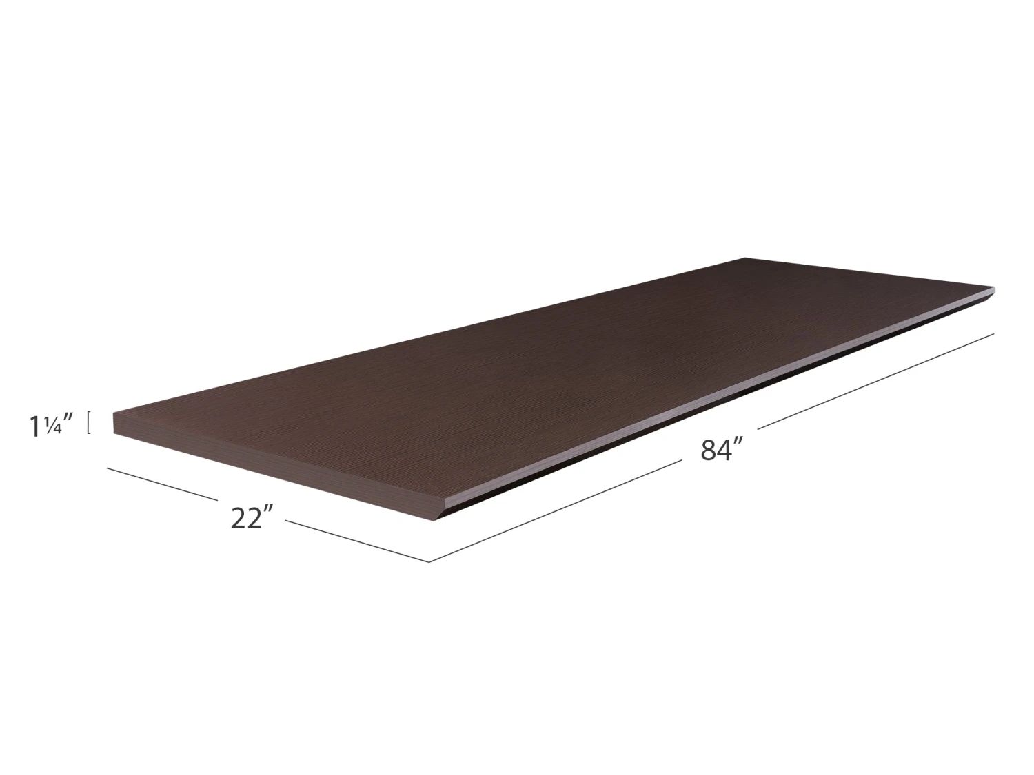 Add more workspace for everyday tasks, storing appliances, and hosting, with a Home Bar Series 84 in. Countertop in Espresso. The 84 in. countertop is built with a solid plywood core, and is designed to fit perfectly over four Home Bar Series 21 in. floor cabinets. A beveled edges adds a classic styling to the countertop that accents the shaker-style cabinets perfectly. The espresso countertop provides a warm elegance, with a dark wood-grain texture to bring out the rich undertones. A stain-resistant, melamine finish stands up to scratches and spills, so it is easy-to-clean and durable for everyday use. Add the perfect accessory to your cabinets, with the Home Bar Series 84 in. Countertop in Espresso.