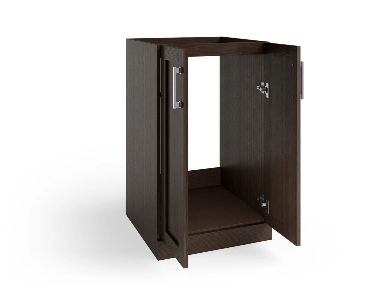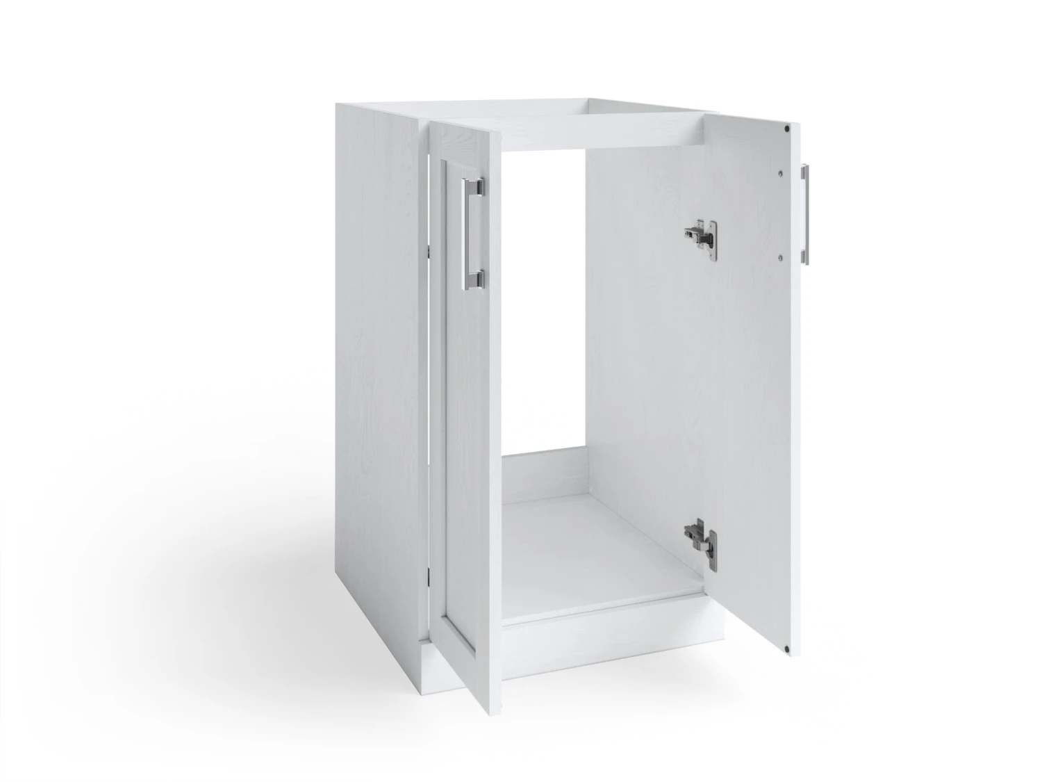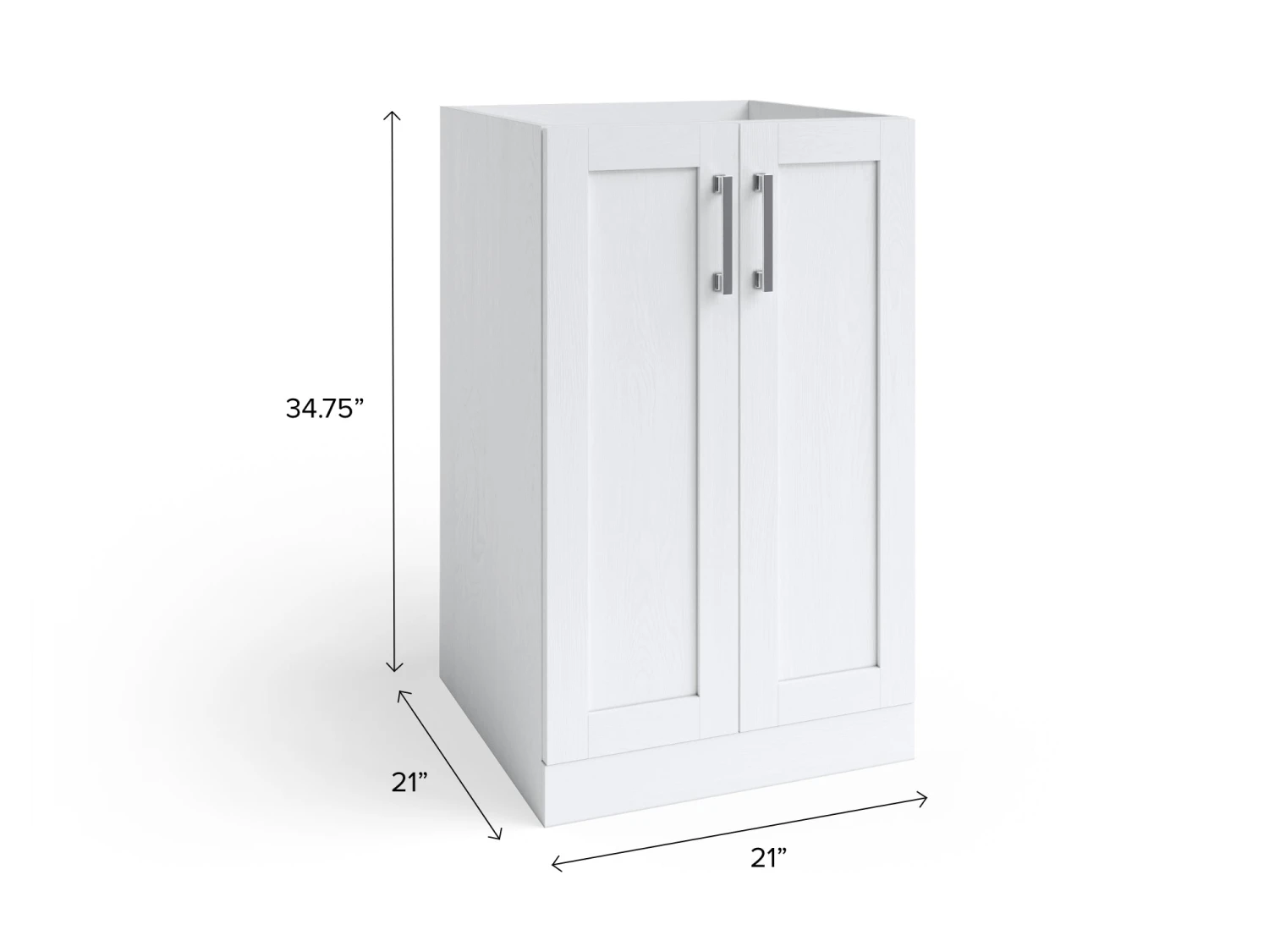 Organize and declutter in style with the Home Bar Series 21 in. 2 Door Sink Cabinet. Simply slot your NewAge sink into the top for a precision fit. The solid plywood core provides ample strength, while premium integrated European soft-close hinges keep your doors aligned and prevent slamming. The Home Bar Series 21 in. cabinetry is available in a variety of colors with a stain-resistant melamine finish that stands up to spills and resists scratching. Nickel-plated handles feature subtle details that accent the classic shaker-style doors and drawers. The two-door design provides wide access to plumbing and under-sink storage. The removable fake drawer front makes sink installation easy, while also ensuring your sink cabinet blends seamlessly with the rest of your cabinetry.
