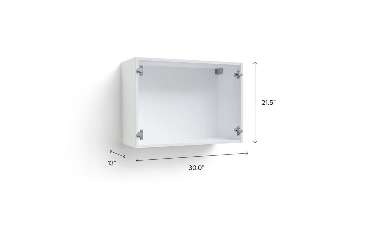Upper wall areas are often overlooked when it comes to storage, but this versatile cabinet allows you to make the most of this empty space. The compact size fits well above appliances and other items, giving you convenient extra storage that doesn’t take up valuable floor space. Complete with premium soft-closing hinges, this cabinet offers extra storage for a versatile and stylish home solution. Included wall mounting brackets make installation easy. Our modular cabinet solutions are available with or without doors, so you can choose the look and style that’s right for your space.