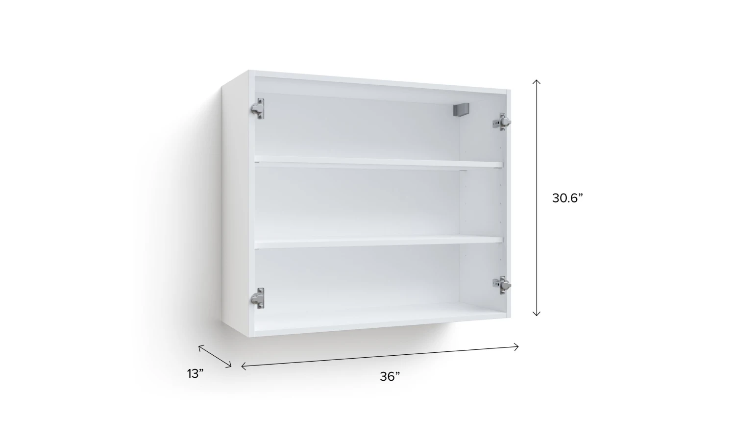 A spacious wall cabinet is a must-have for busy homes where easy access to versatile storage is essential. The clean, minimalist design of this cabinet complements any décor, in your choice of 24 in. or 36 in. widths. With two adjustable-height shelves and an abundance of interior space, our cabinets make it easy to keep home essentials organized and conveniently stored in any room. The soft-close hinges add to the premium feel, while the adjustable height legs accommodate uneven flooring. Our modular cabinet solutions are available with or without doors, so you can choose the look and style that’s right for your space.