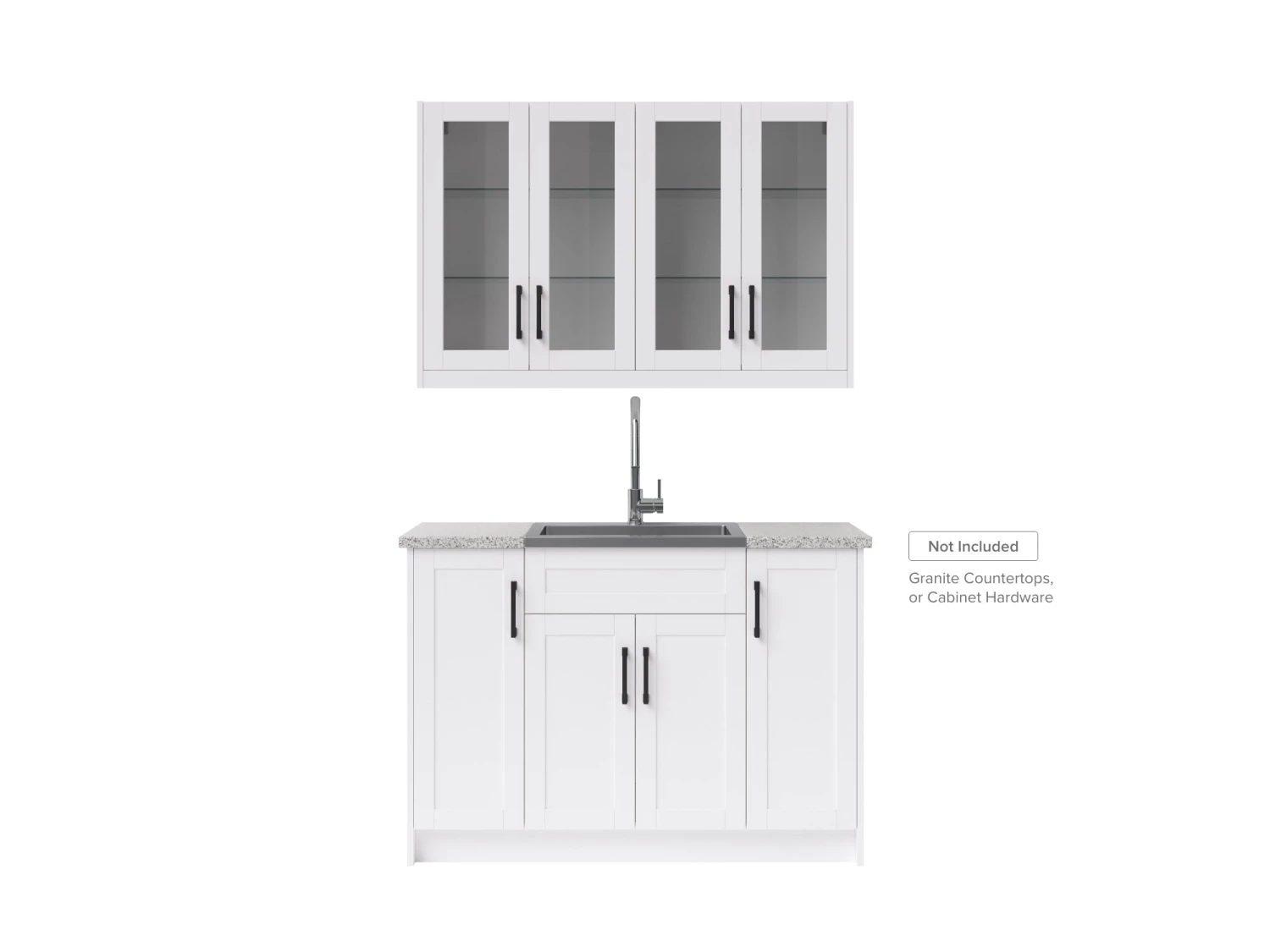 Entertain with flair and enjoy the convenience of a handy sink and faucet in any room with a modular home wet bar cabinet set. Each fully-assembled set provides convenient storage in a sleek, space-saving profile. Customize with your choice of granite countertops, handles and premium trim. It is the perfect place to keep serving sets, placemats, tablecloths, and decorations along with glassware and other entertaining essentials. Full-extension drawers feature premium, soft-close hinges. Thick 18mm frame construction delivers outstanding durability beneath an easy-clean surface. Sink includes sound dampening feature and comes with drain basket and easy-to-install faucet. Available in your choice of white or gray matte finishes to complement any décor. Cabinet organization accessories sold separately.