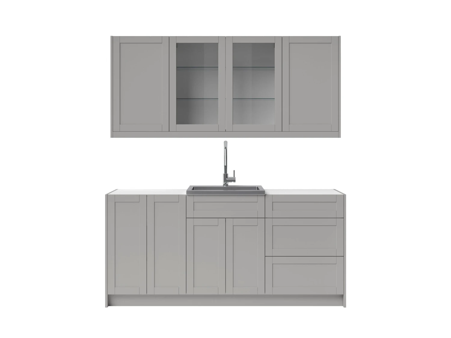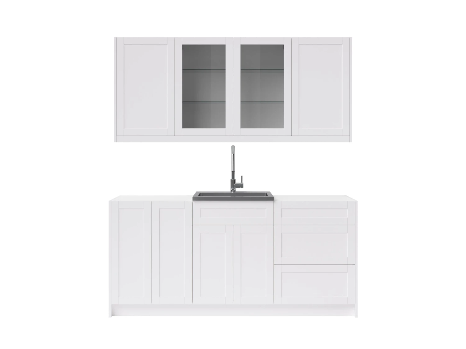 Entertain with flair and enjoy the convenience of a handy sink and faucet in any room with a modular home wet bar cabinet set. Each fully-assembled set provides convenient storage in a sleek, space-saving profile. Customize with your choice of granite countertops, handles and premium trim. It is the perfect place to keep serving sets, placemats, tablecloths, and decorations along with glassware and other entertaining essentials. Full-extension drawers feature premium, soft-close hinges. Thick 18mm frame construction delivers outstanding durability beneath an easy-clean surface. Sink includes sound dampening feature and comes with drain basket and easy-to-install faucet. Available in your choice of white or gray matte finishes to complement any décor. Cabinet organization accessories sold separately.