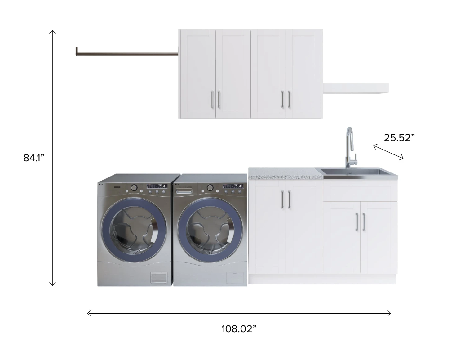 108.02 in. W x 25.52 in. D x 84.1 in. H