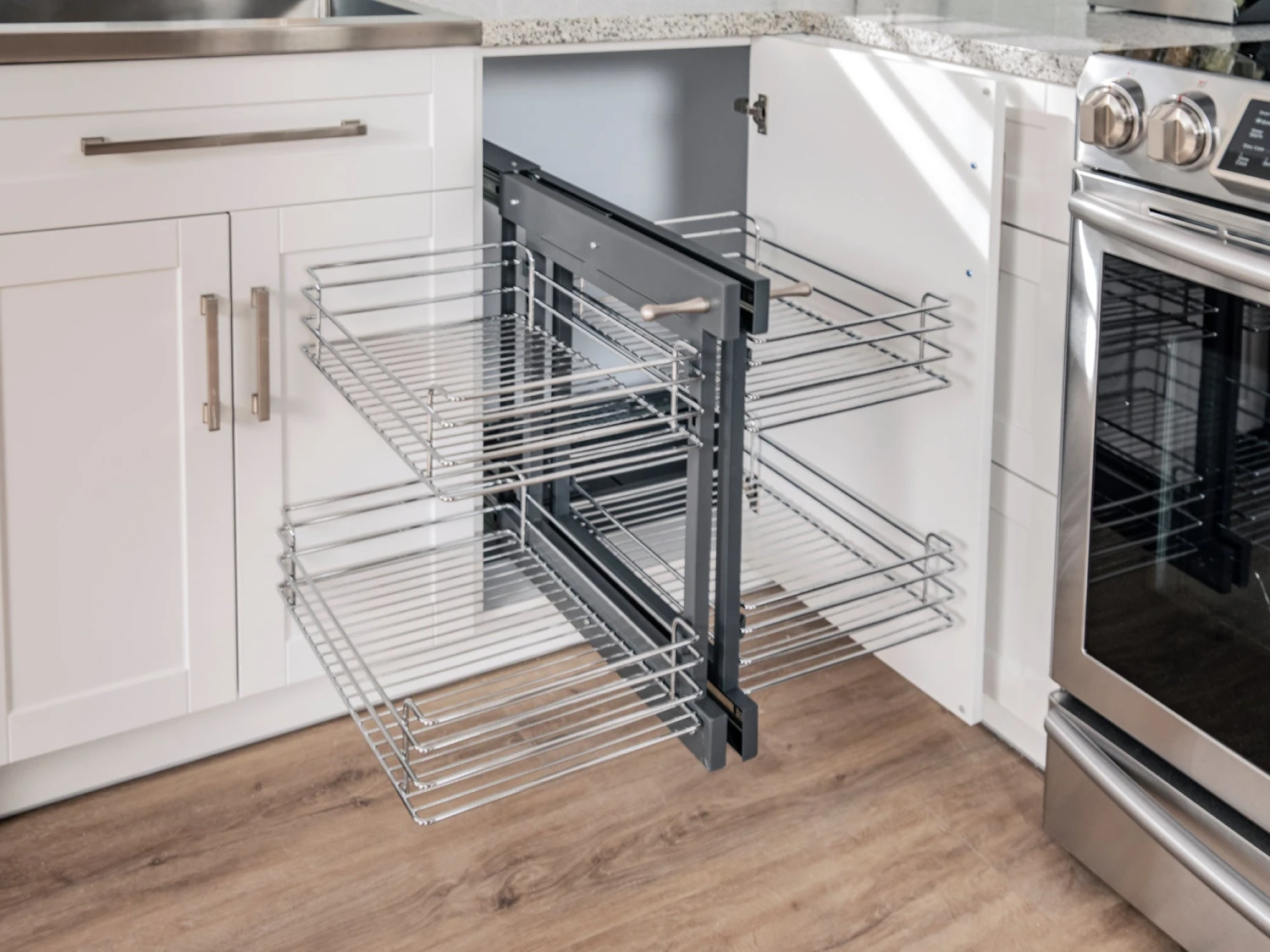 - Compatible with 18in. door opening blind corner cabinets