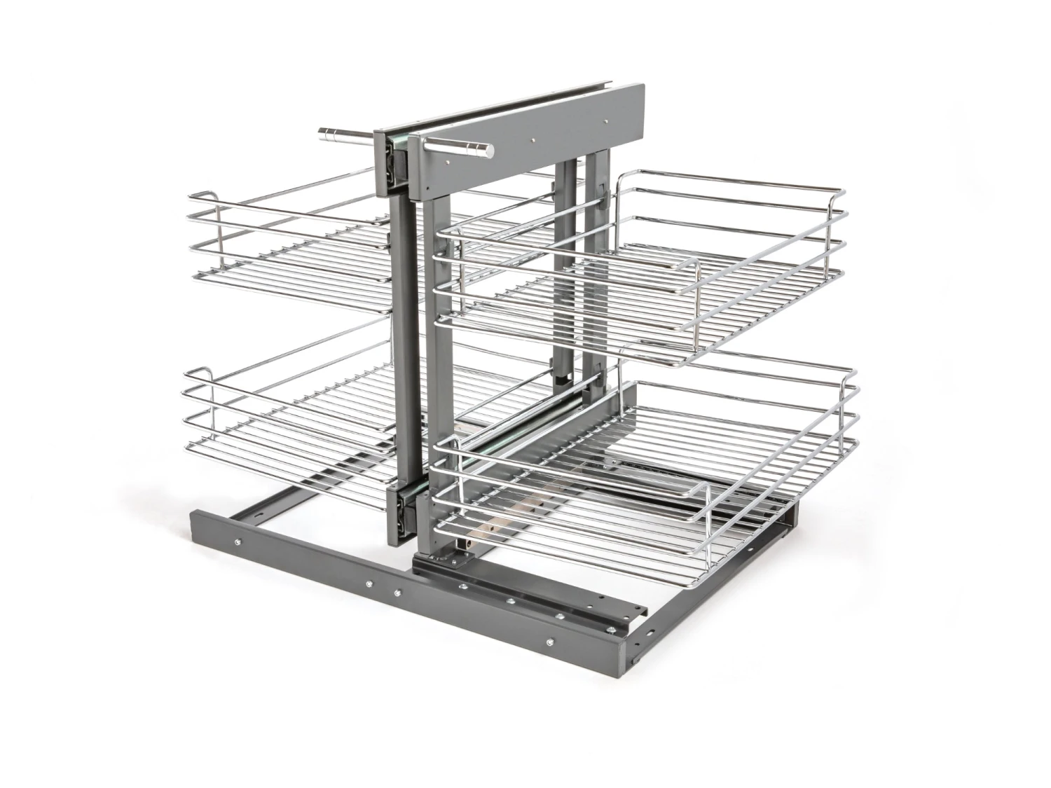 Corner cabinets are a fantastic way to make best use of kitchen space, but access to the back of the cabinet can be awkward. The NewAge Magic Corner allows you to make the most of your cabinet space and keep all the contents organized. It comes with four adjustable baskets and a soft close slide system that makes it easy to access your kitchen essentials. With a sturdy steel alloy construction, this can be used to store and organize a number of items. It’s easy to wipe clean thanks to the polished chrome plated finish and it can be mounted easily to the base panel of your corner cabinet.