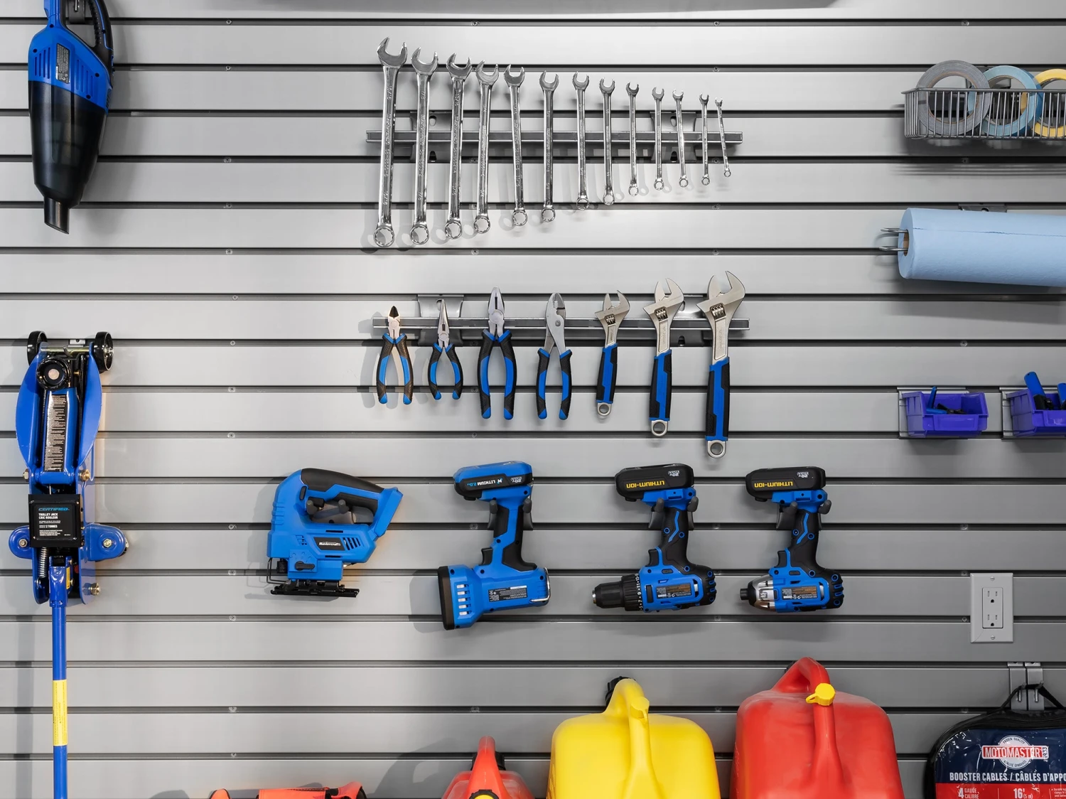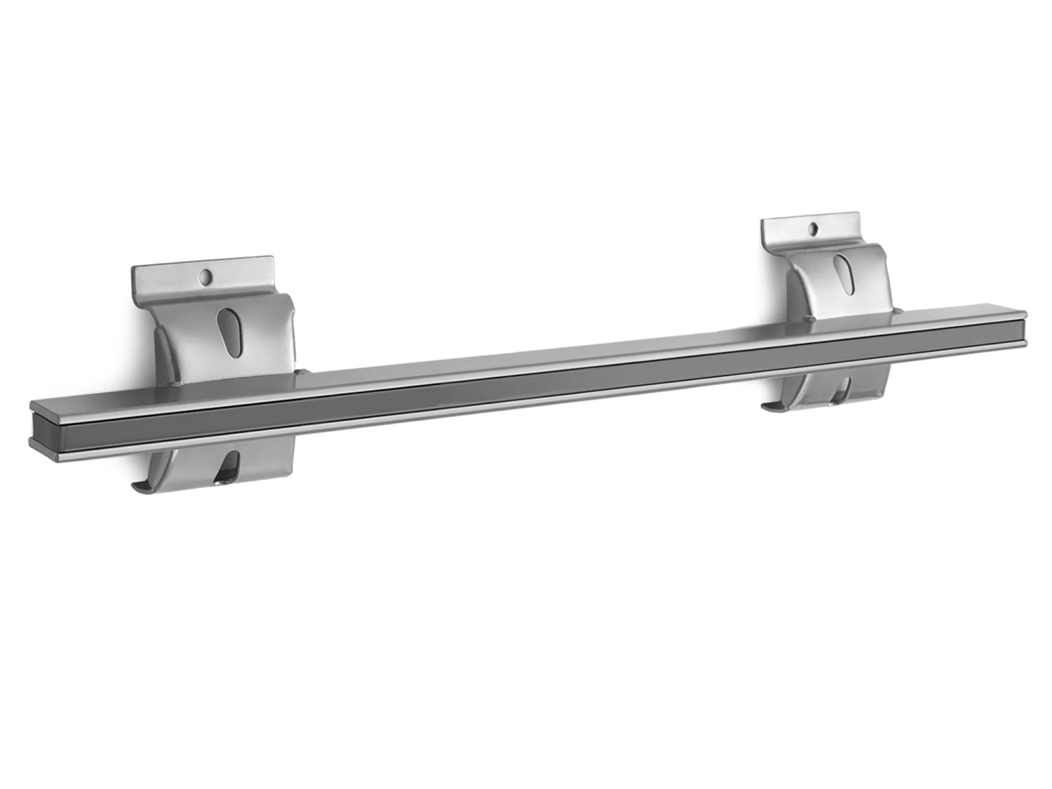 Maximize your slatwall system with NewAge Products Slatwall Accessories. Designed for use with NewAge Products Steel and PVC Slatwall systems, and compatible with most 3 in. on-center slatwall systems, our snap-in Slatwall Accessories are built with steel for extra strength. The powder-coat silver gloss finish looks great in any space and on both silver and black slatwall solutions. The Magnetic Tool Bar provides a unique solution for organizing your often-used hand tools.