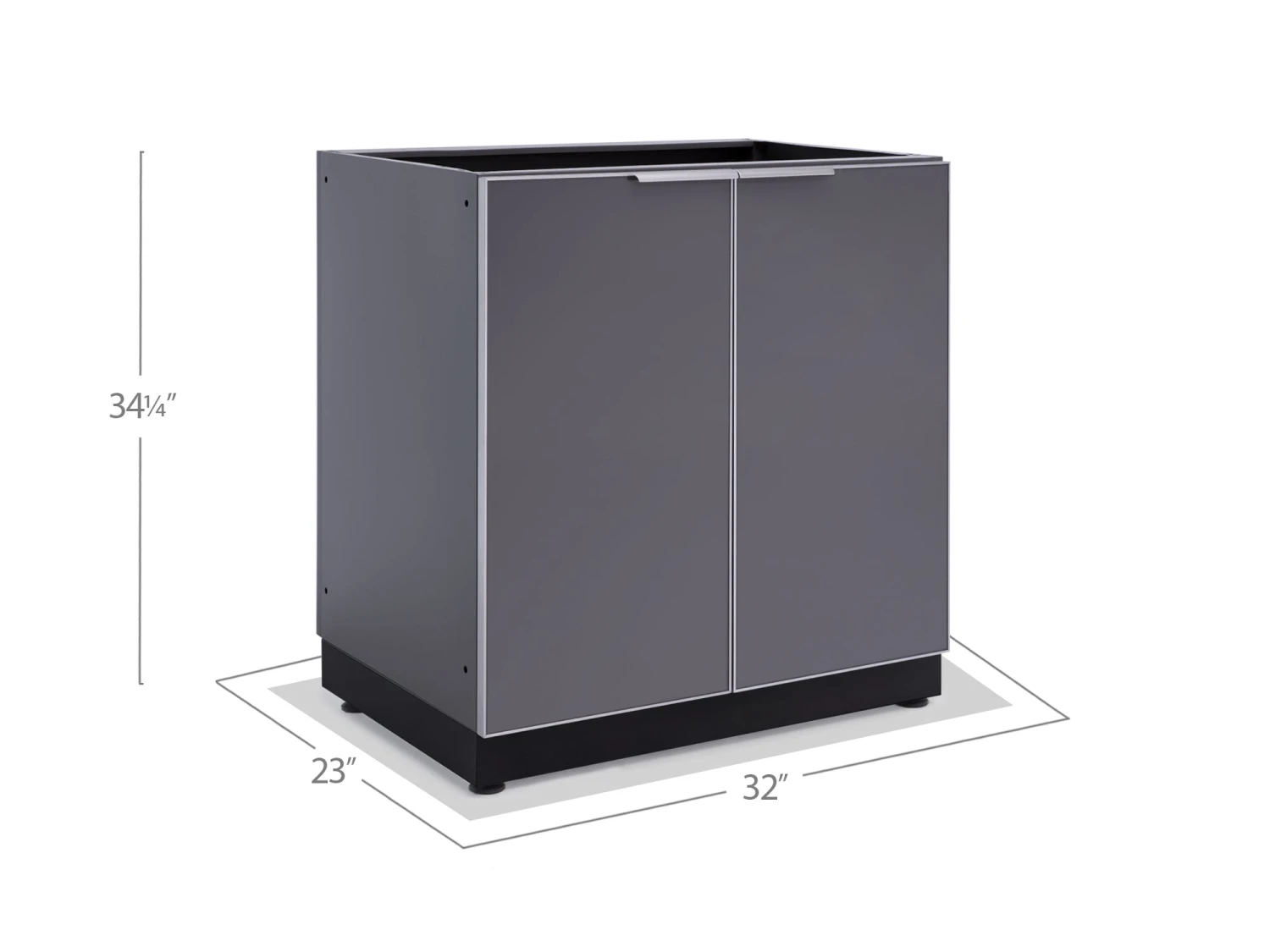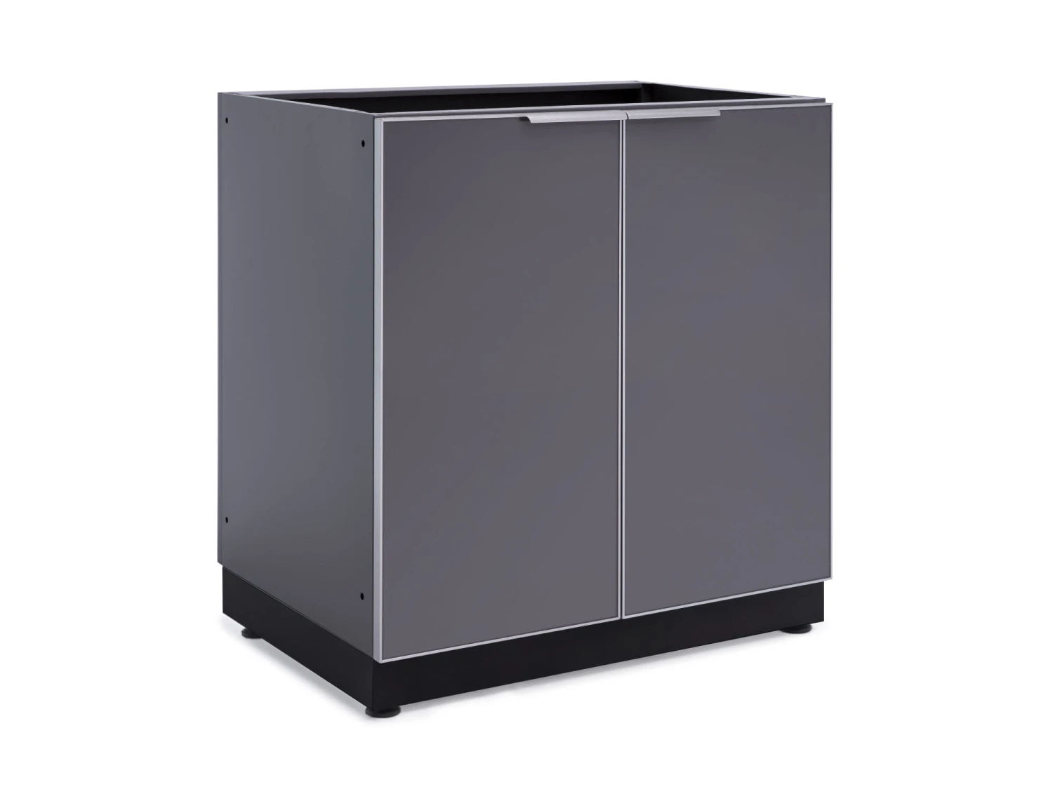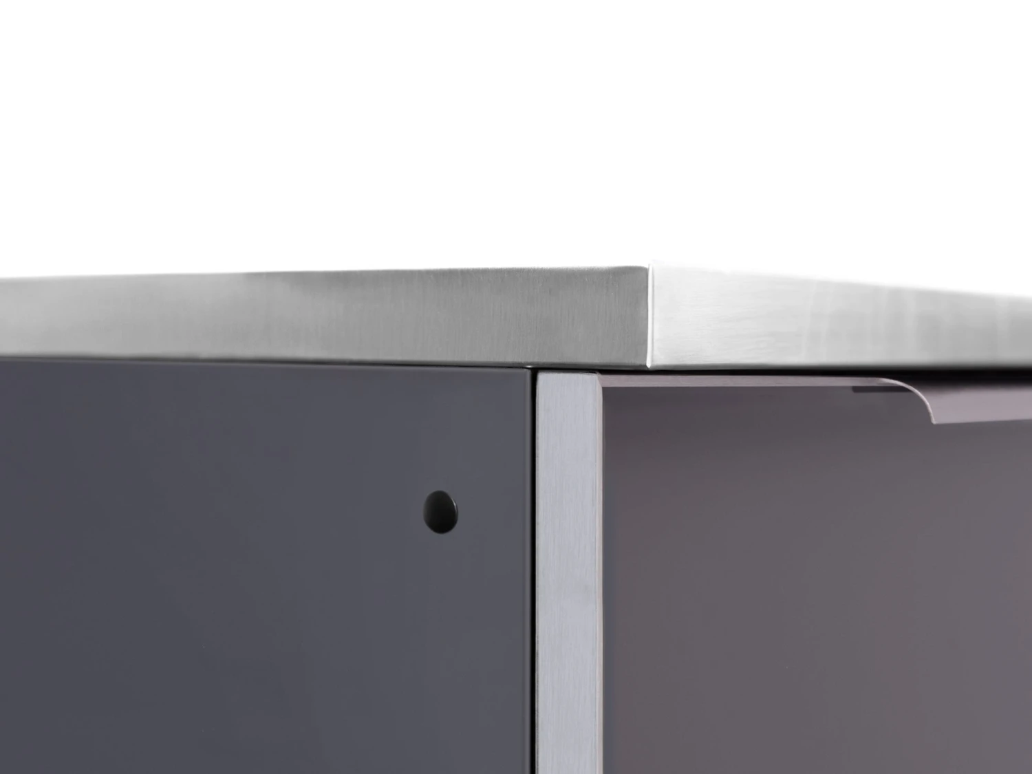 The Outdoor Kitchen 2-Door Cabinet in Slate Gray is the ideal backyard storage space for everything from plates and serving dishes to gardening supplies and kids toys. With a weight capacity of 450 lbs., the aircraft-grade aluminum frame and slate-gray tempered glass doors with integrated handles, easily support your belongings, and the two adjustable steel shelves provide a customizable storage solution that allows for items of all sizes. Soft-close hinges prevent the doors from slamming, and protect glasses and stemware, while the magnetic door latch keeps the doors securely shut. Height adjustable levelers keep the cabinet level on uneven decks and patios. When building the perfect outdoor space, the NewAge Products Outdoor Kitchen 2-Door Cabinet in Slate Gray is the versatile storage unit that will keep your patio looking tidy and organized.