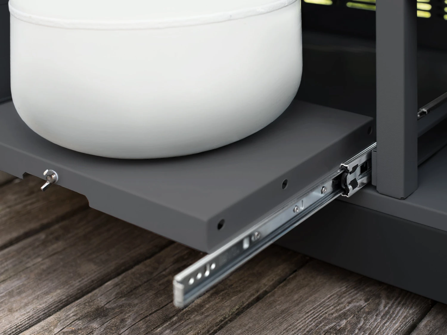 - Pull-out propane tank tray and tank lock