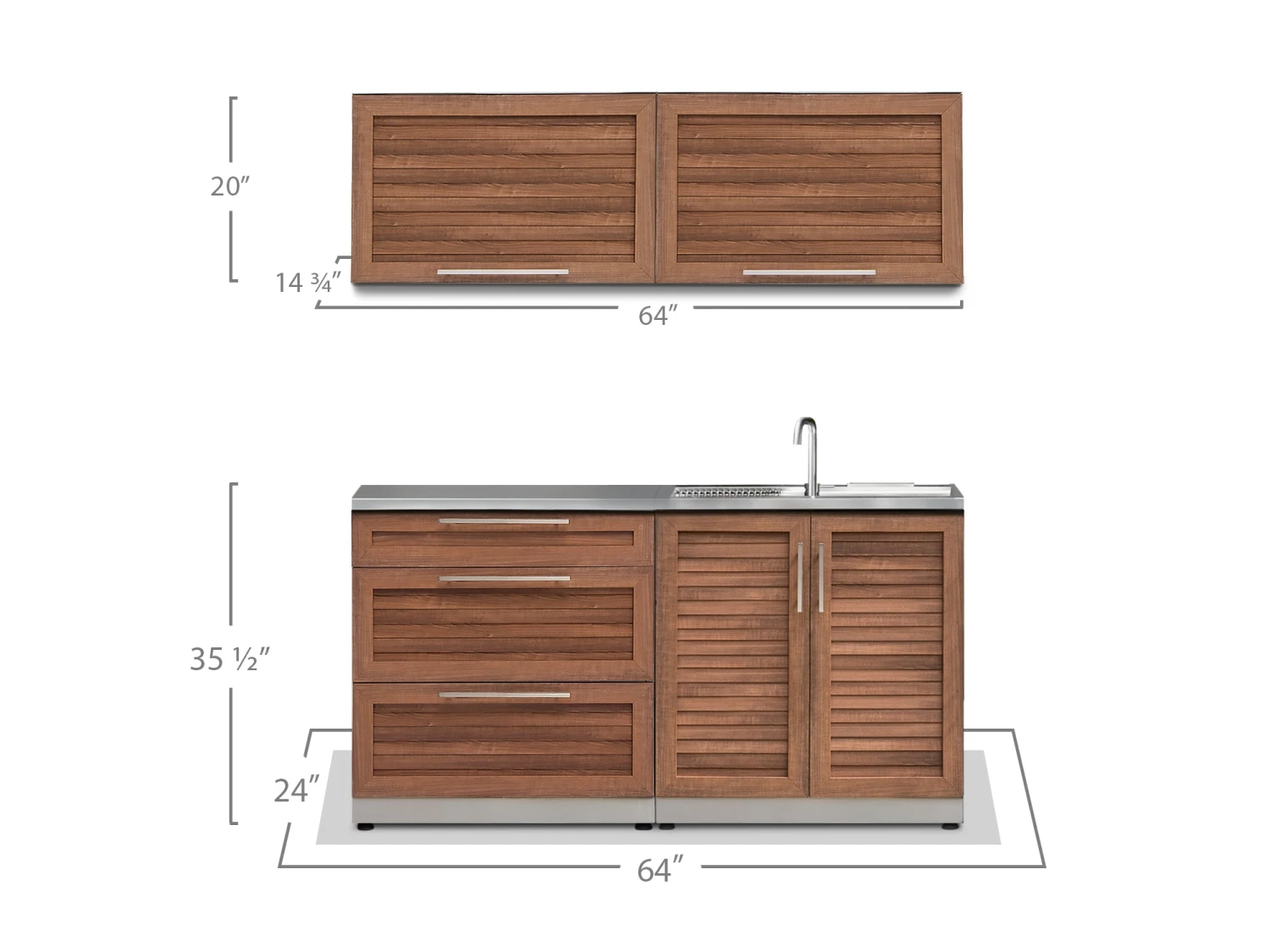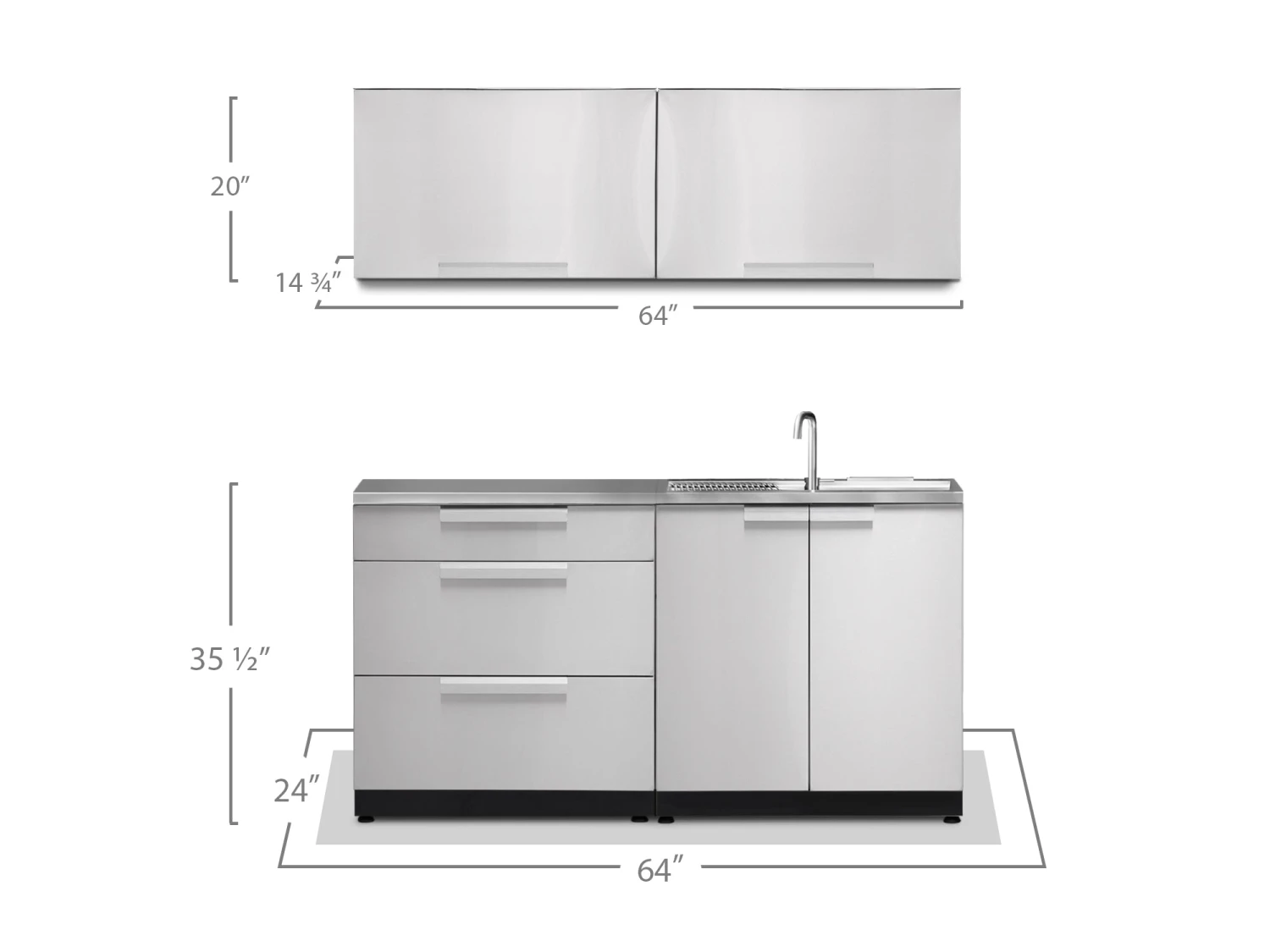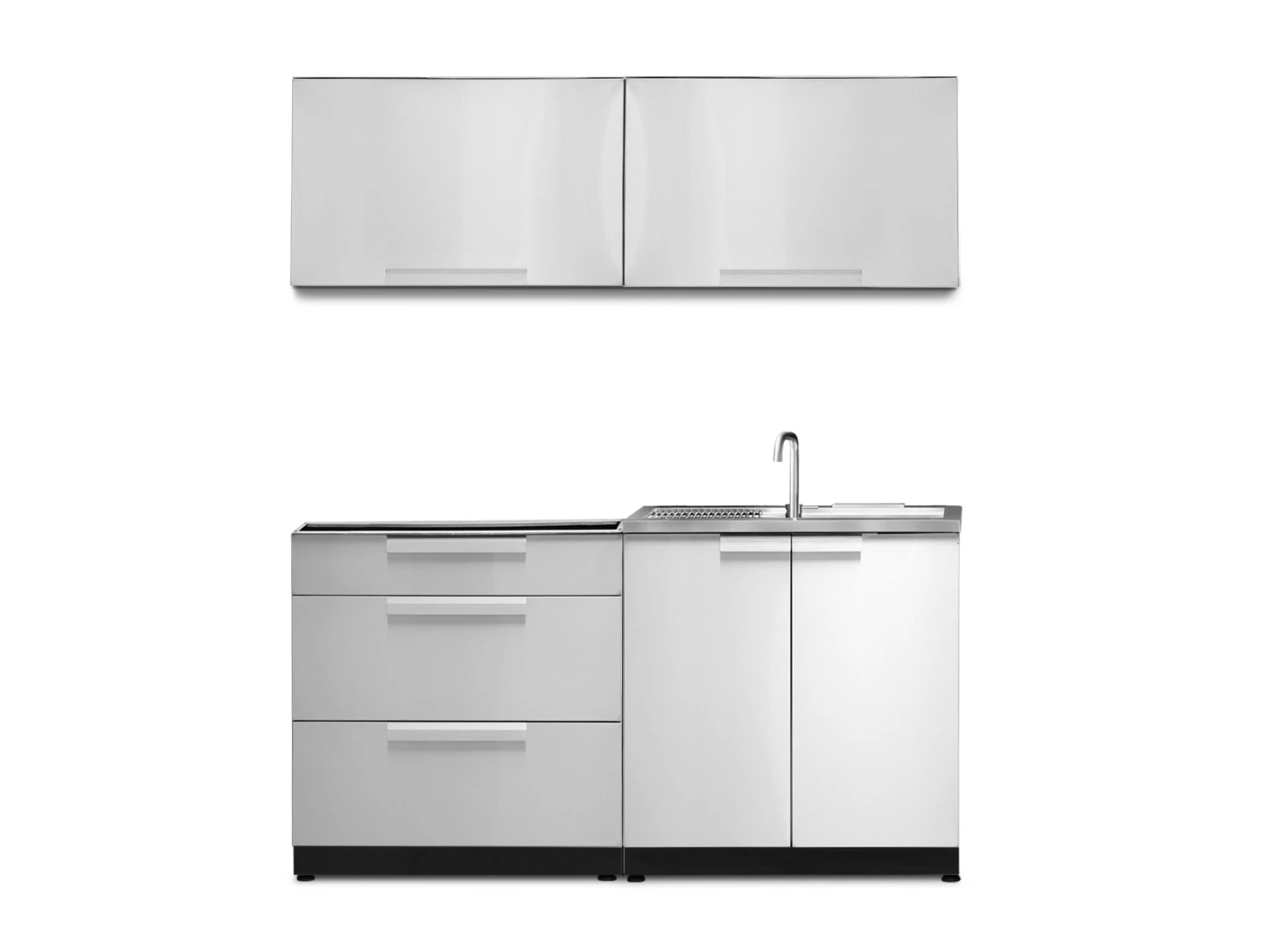 Get grilling, and maximize your backyard storage space, with Outdoor Kitchen cabinets. Constructed from restaurant-grade, with reinforced double-wall doors, these cabinets are weather and corrosion resistant, for all-season durability. The 3-Drawer Cabinet has adjustable upper drawer dividers for cutlery and tool organization, with two extra deep drawers, perfect for storing all your hosting essentials. The Sink Cabinet provides a convenient clean-up station for muddy hands and dirty dishes, allowing you to spend less time in the kitchen, and more time with your guests. With brushed doors and beveled aluminum handles, the NewAge Products Outdoor Kitchen cabinets provide a clean, professional look that will get your backyard organized. The pre-installed NewAge Outdoor Kitchen Sink (P/N H00112A-01) is certified to be used with the pre-installed NewAge Outdoor Kitchen Faucet (P/N H00097A-01) only. No faucet except for H00097A-01 should be installed onto this sink.