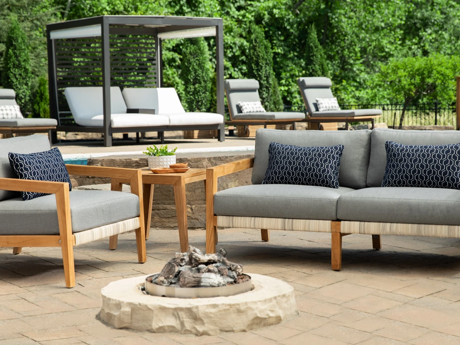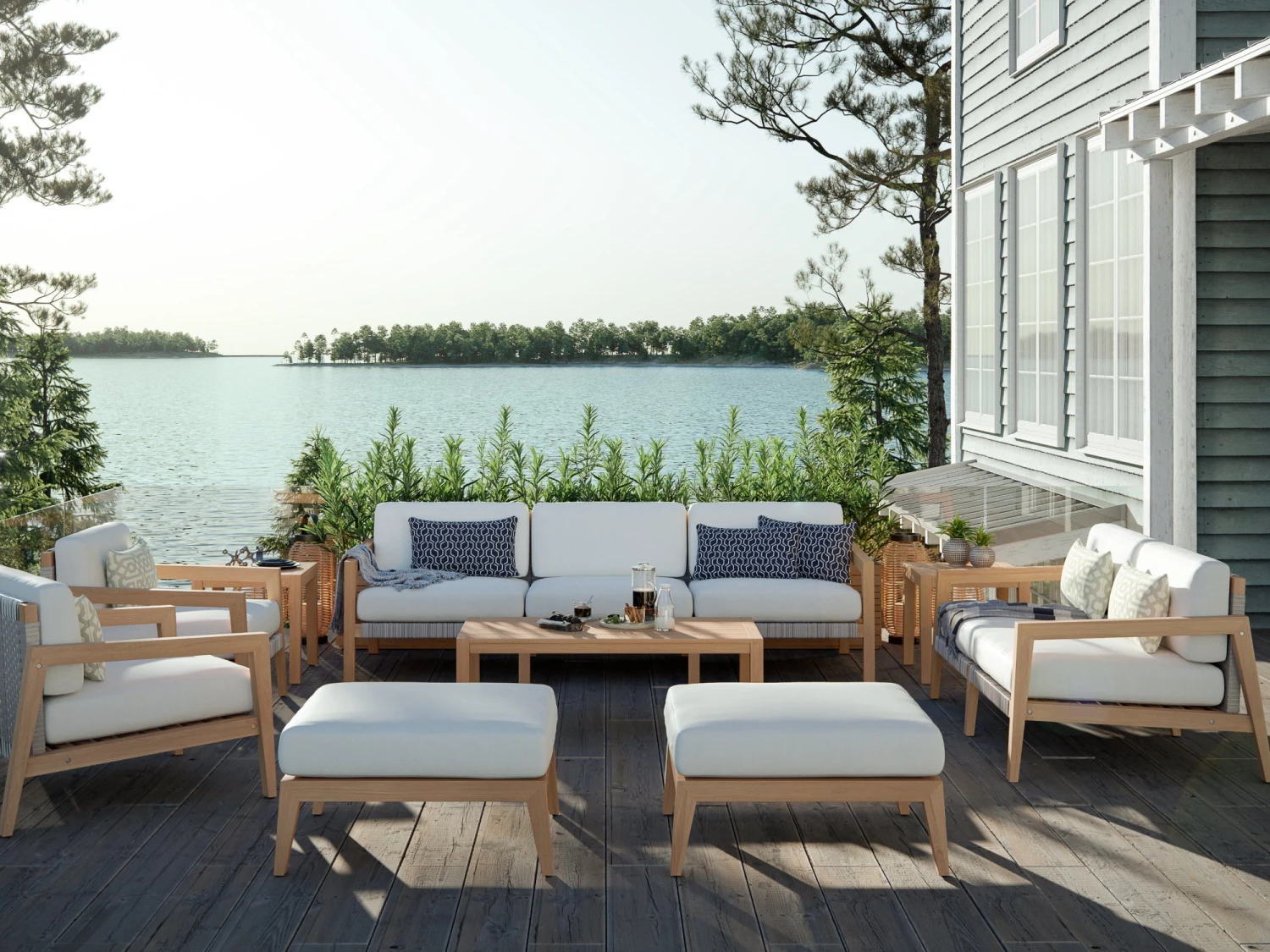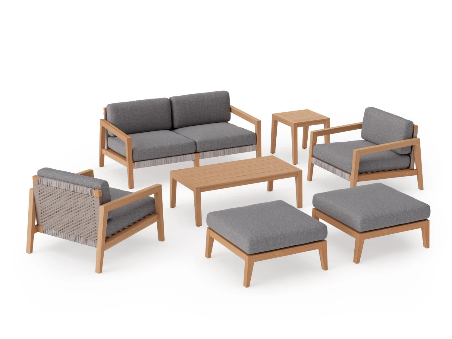 Combining the warmth of natural teak and the aesthetic textures of woven rope fabric, Lakeside seating is premium luxury with a focus on casual comfort.