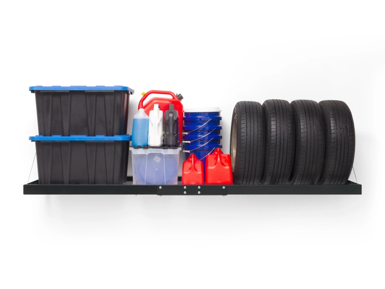 Ultra-strong, easy to install, and adaptable to your space; NewAge Products Pro Series Wall Mounted Steel Shelves offer a versatile way to keep organized, and maximize off-the-floor storage space in your garage. With the 2 ft. x 8 ft. Pro Series Steel Shelf, you’ve got full-length wall storage that’s easily accessible and keeps your often used items within reach. Combine lengthwise to create loft storage around the perimeter of your garage ceiling and take full advantage of your available overhead space. Aircraft-Grade steel support cables tested to 1,000 lbs help support the engineered steel frame constructed from heavy-gauge steel, with a C-Shaped front perimeter beam, holding loads up to 600 lbs. The steel wire decks drop securely into the cross beam supports for even weight distribution, and a 1.25 inch perimeter safety lip prevents items from sliding off the edge. Make the most of your garage space, with NewAge Products Pro Series Wall Mounted Steel Shelves.