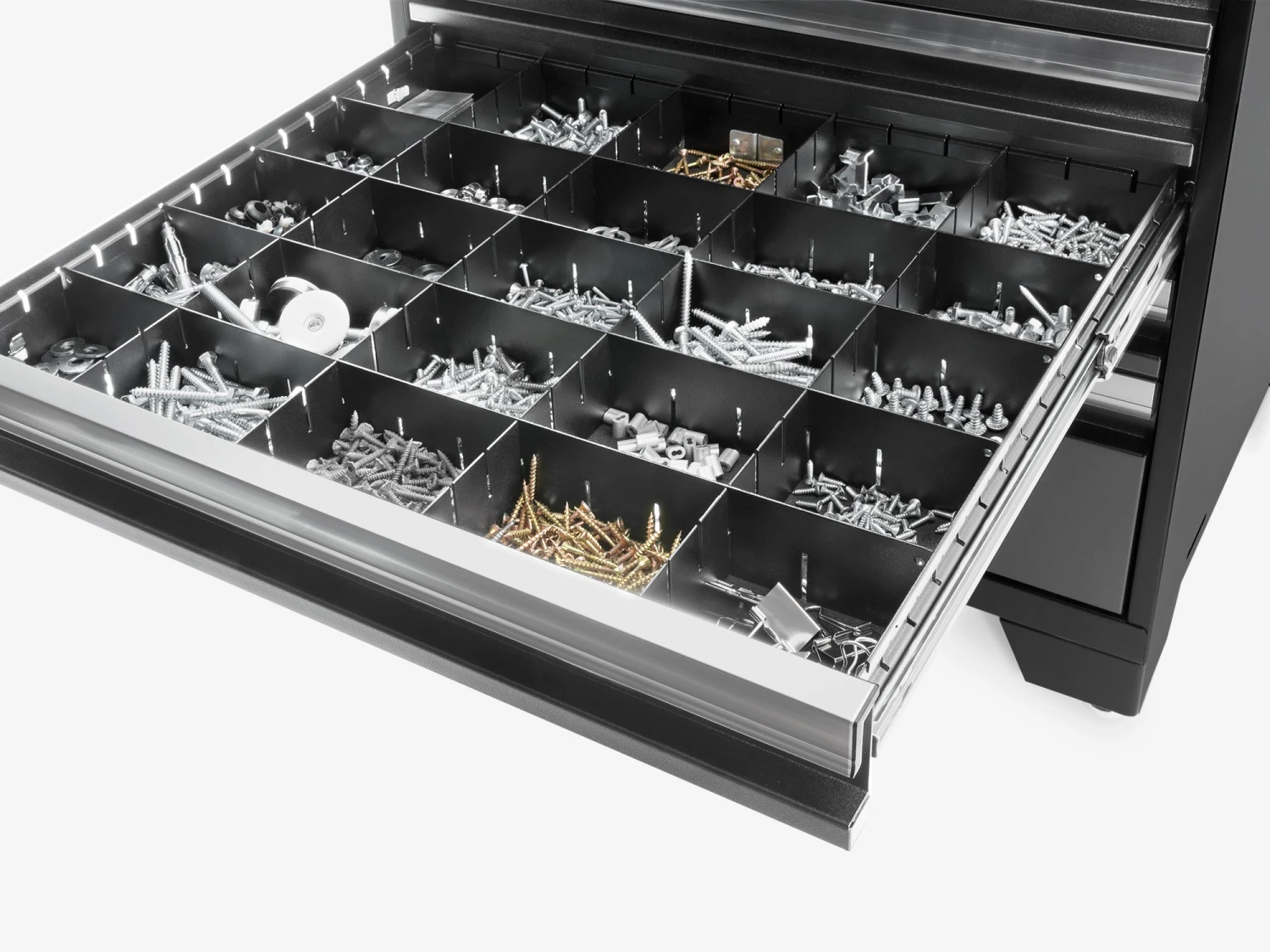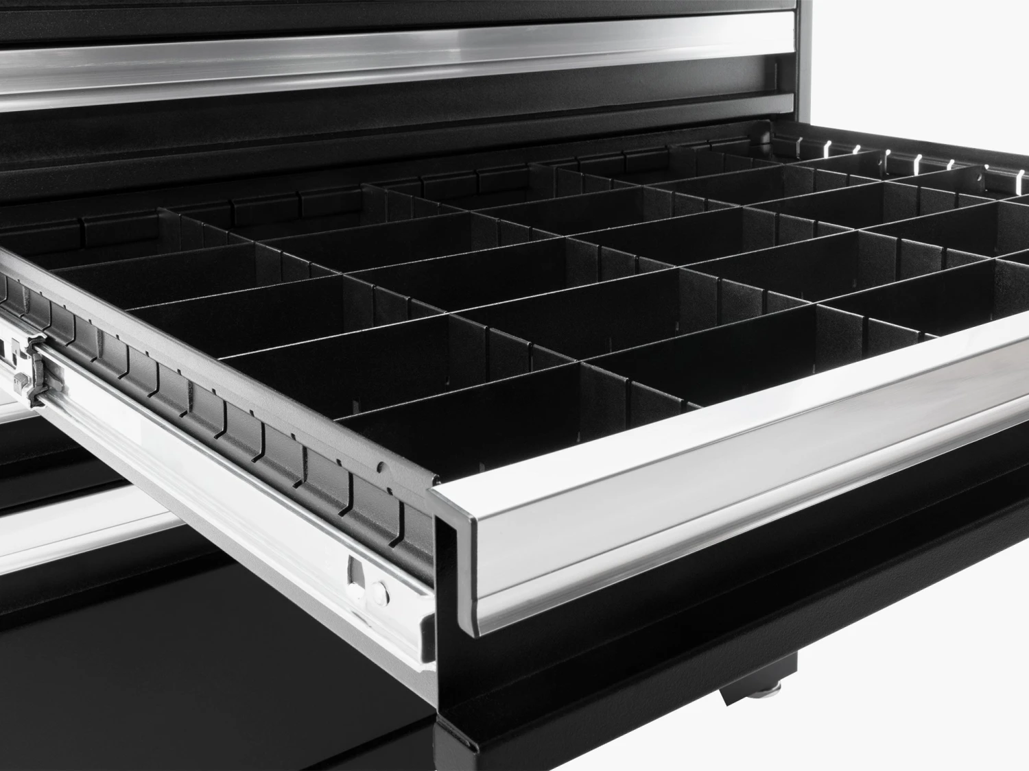 - Includes steel drawer dividers and custom-fit foam liners