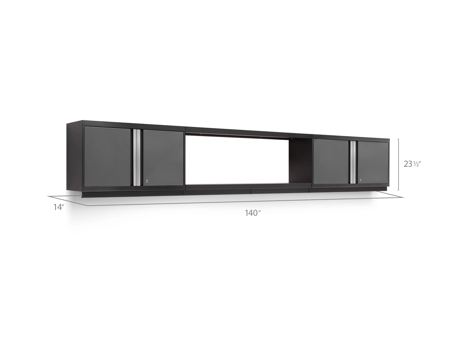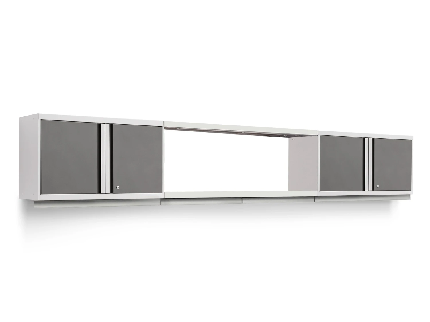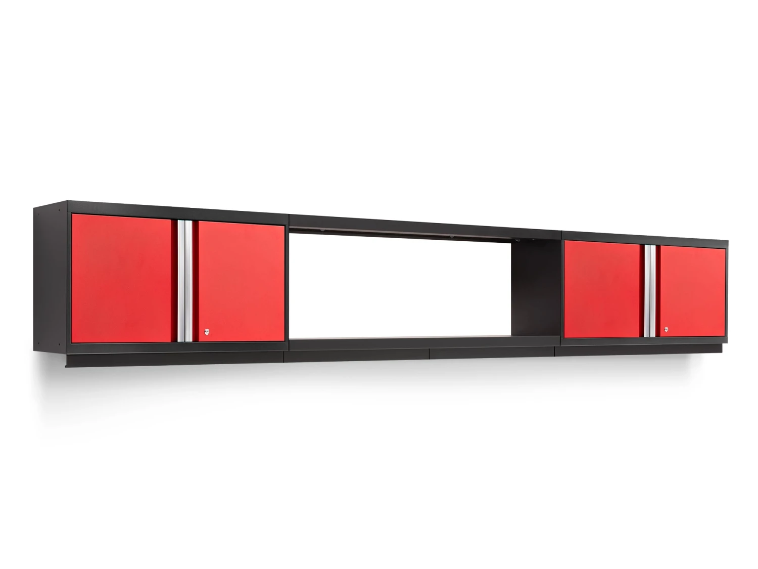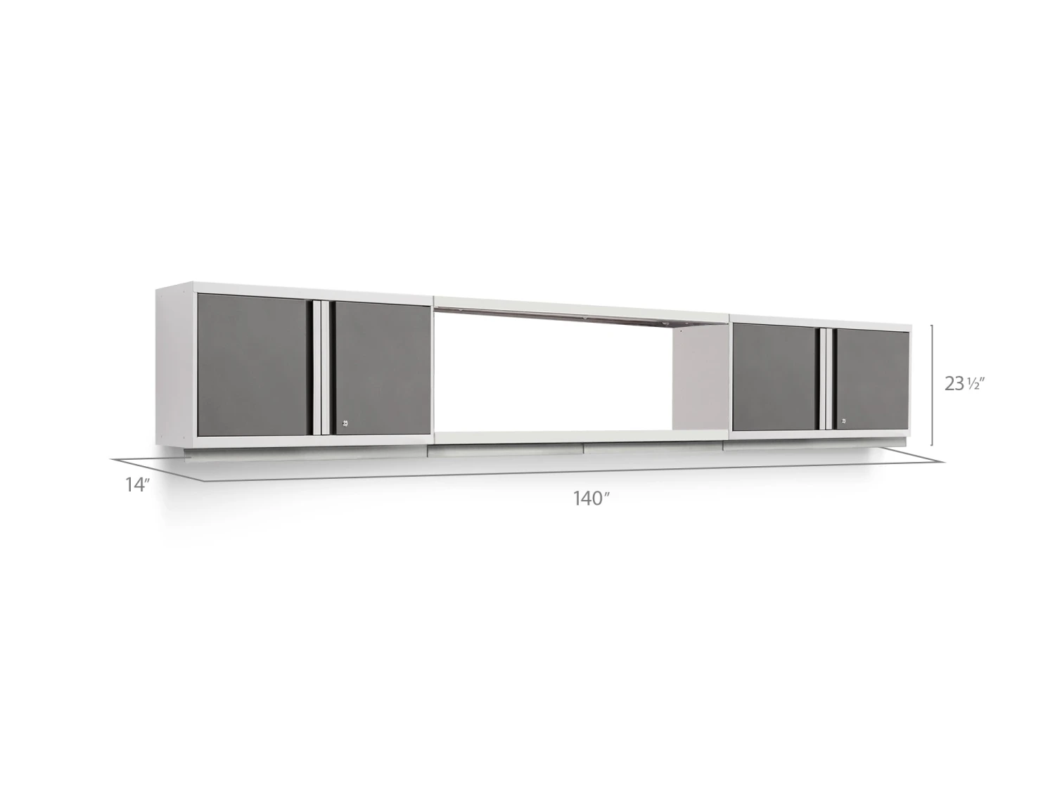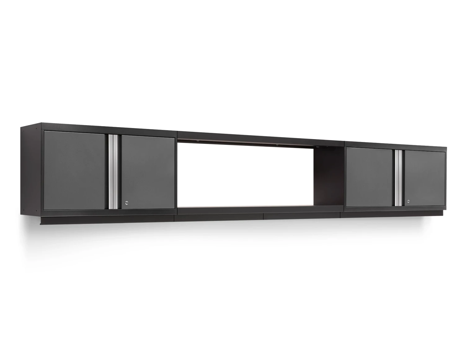 Get more out of your garage with NewAge Products Pro Series collection of storage solutions, engineered for strength, and designed with the premium features and modern look of a garage showroom. Designed to get your gear up and off the ground, the Pro Series 42 in. Wall Cabinets allow you to make the most of your wall storage space, with an extra-large interior that gives you ample space to safely store up to 200 lbs. of gear per cabinet. With a fully-welded steel frame and double-walled lockable doors, the 42 in. Wall Cabinets ship ready for work, and include quick-install wall brackets for an easier installation. The durable paint finish prevents scratching, while the included valance allows you to hide optional LED lights and keep cables neatly tucked away. (LED Lighting sold separately) The Pro Series Integrated Display Shelves add a unique solution to your cabinet set for accessible storage. The heavy duty steel shelves hold up to 250 lbs. each, and are easily installed between our Pro Series Wall Cabinets with the included mounting hardware. NewAge Products Pro Series collection is the ideal all-in-one solution to your garage organization needs.