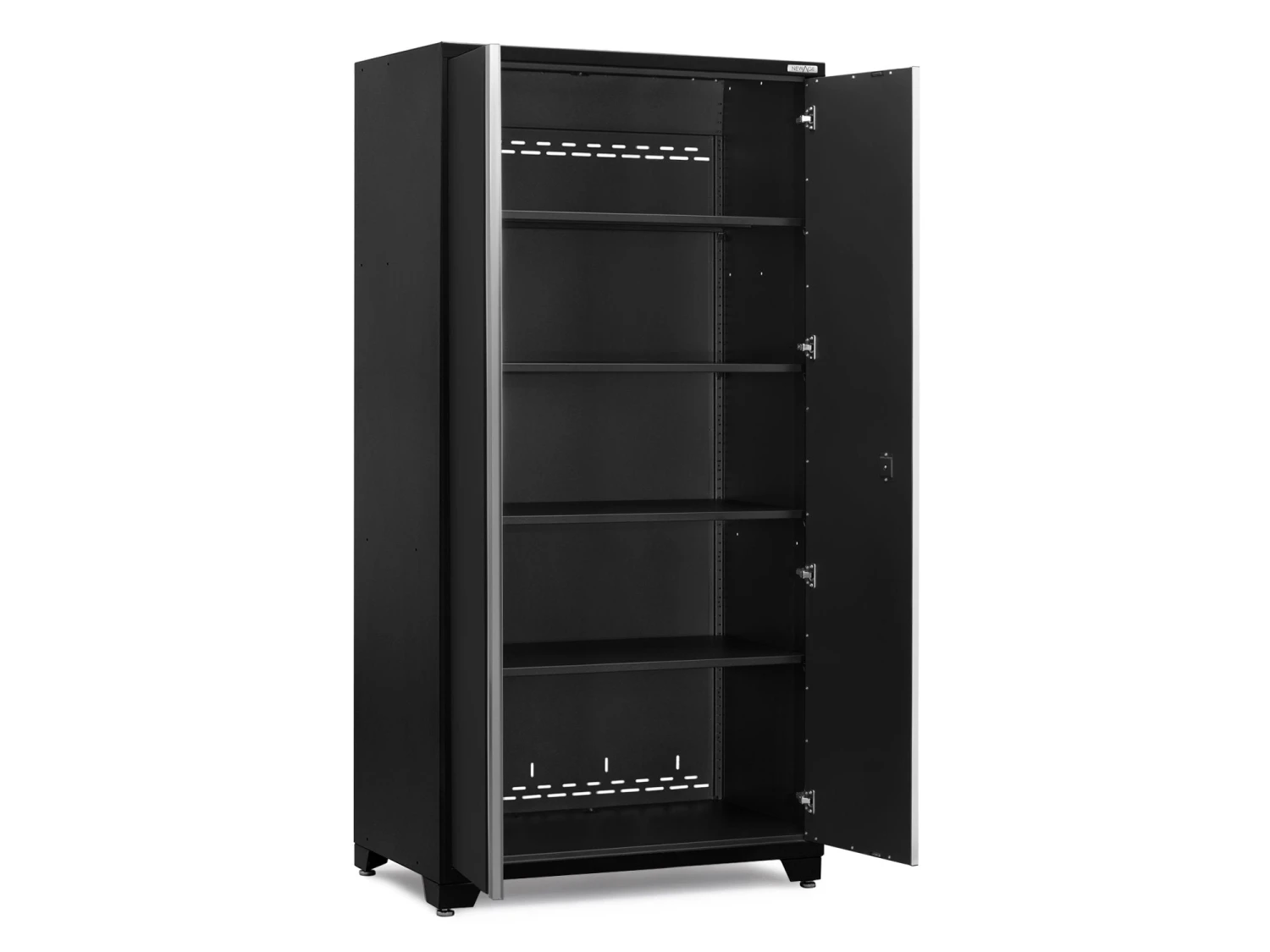 Organize and store more with the Pro Series 42 In. Multi-Use Locker. This extended locker provides you with ample space to house all of your equipment and tools. Built with commercial grade, heavy-duty steel, the locker offers an impressive 1000 lbs. weight capacity and 300 lbs. shelf weight capacity so you can store bulky bins, golf clubs, and other large items with ease. Soft-close hinges on welded steel frames and double-walled doors provide secure, lockable storage for your gear. The durable powder-coat paint finish not only looks great, but also improves the corrosion resistance of the cabinet, and stands up to the rigors of everyday use. The 4 easy-to-adjust steel shelves can be repositioned in one-inch increments to accommodate different sized items and the included removeable closet rod with multi-peg hooks provides ideal hanging space for coats and seasonal clothing. Integrated vents improve air flow to help to dry and air out sports equipment like football pads and hockey gear. Easily attach your own fan or filter onto the vents to further improve air circulation. Keep all your large items organized and ready with the Pro Series 42 In. Multi-Use Locker.