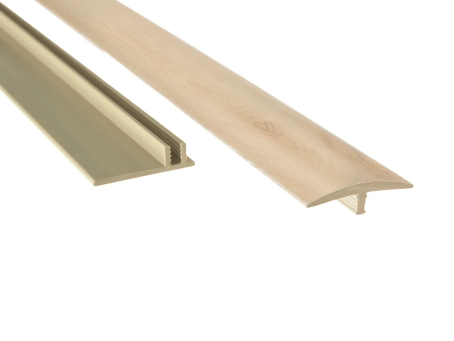 Create a seamless transition between tile flooring, hardwood, or other floors of equal height with the 46 in. T-Molding Transition Strip. Perfectly color matched to NewAge Stone Composite LVP flooring, our transition strips are the perfect add-on to your flooring bundle, for covering doorway gaps and areas where two different flooring materials of the same height meet. The two-piece design makes for a quick and easy installation. Simply use adhesive to secure the PVC base to the subfloor, and snap in the T-Molding Transition Strip to cover floor gaps for a smooth, streamlined finish.