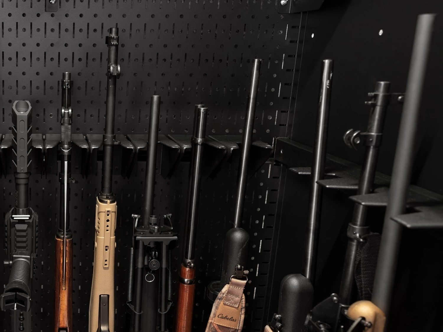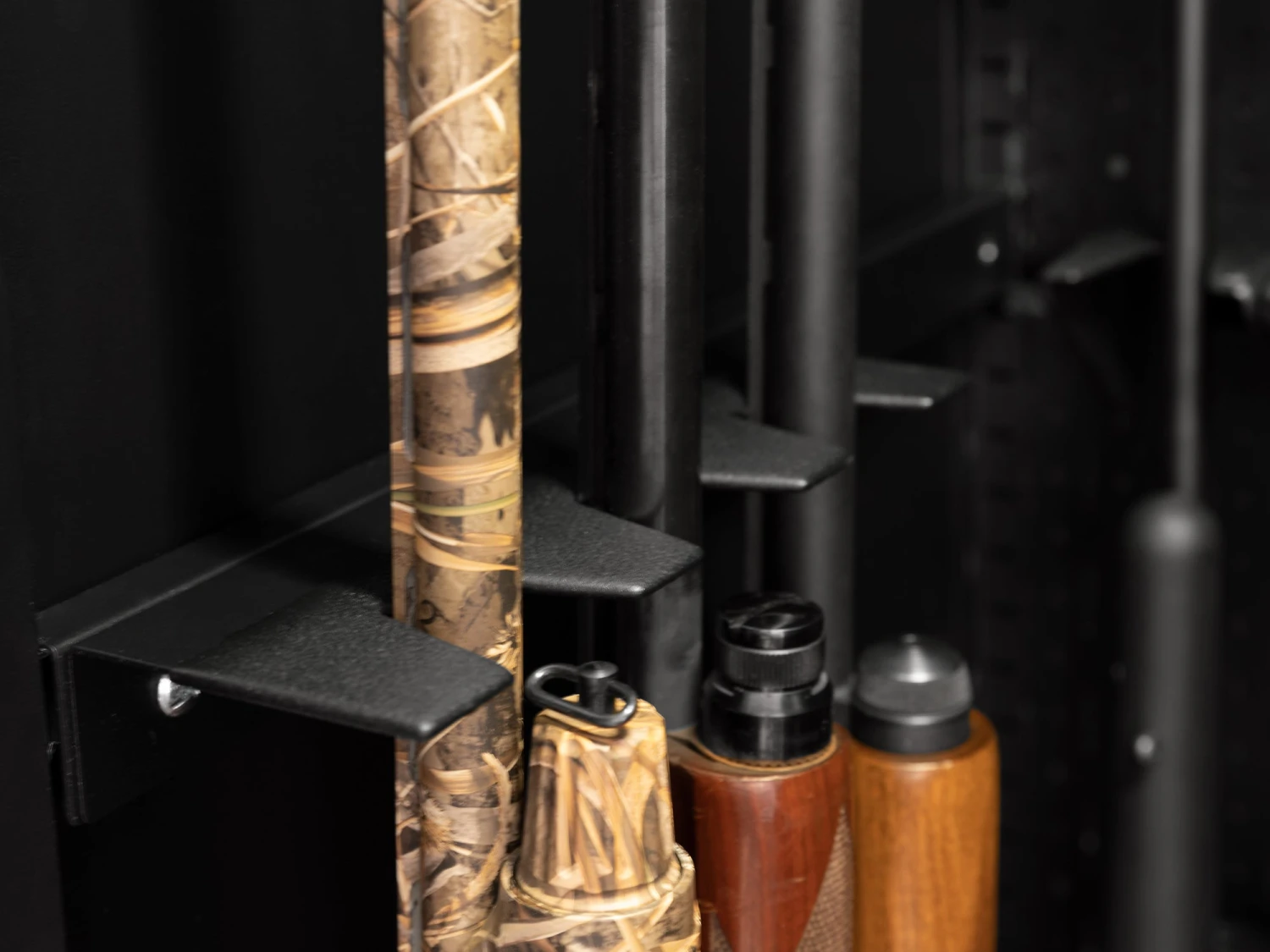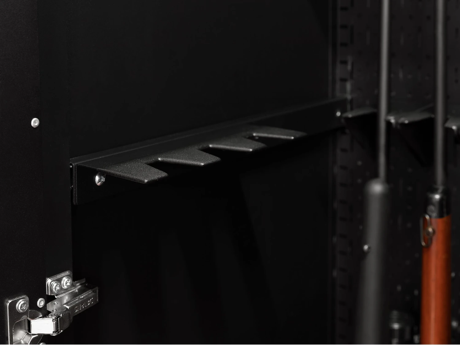 Constructed from heavy-duty steel, the Side Barrel Rests feature a durable powder-coat paint finish with rubber coated tips to protect barrels from getting scratched while also absorbing sound. The versatile Side Barrel Rests allow you to take full advantage of the 24 inch deep Secure Gun Cabinet, and can be used to create a U-shaped set up. When installing each of the Side Barrel Rests, you can choose whether to install one support plate to hold 3 rifles, or two support plates to hold 6 rifles. Easily assemble the Side Barrel Rests using self tapping screws, and mount the sides of your Secure Gun Cabinet. The Side Barrel Rests have been designed to be used alongside NewAge Products 6 Gun Stock Rests.