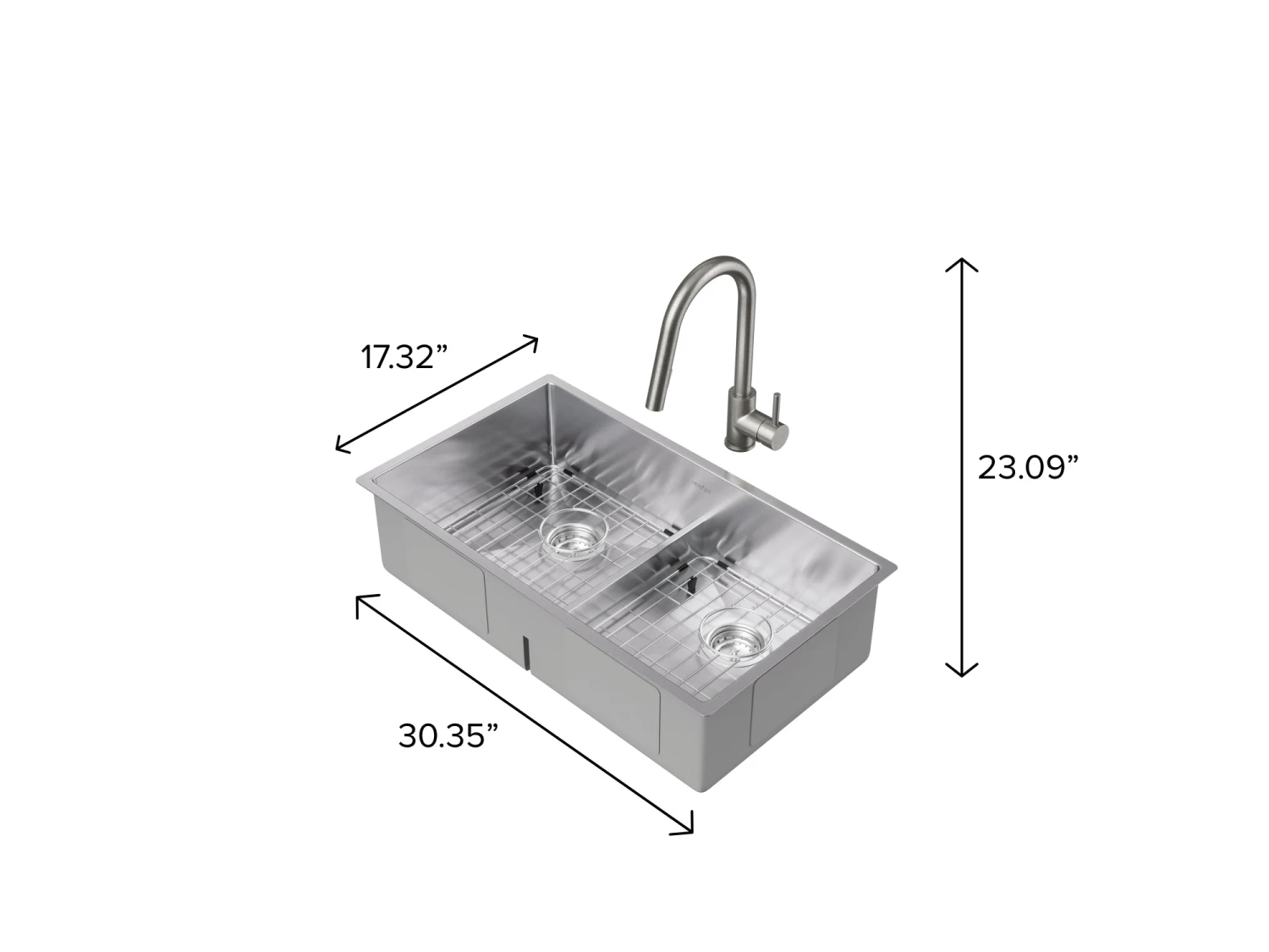 - 1 x 30.35 in. Undermount Double Bowl Stainless Steel Sink with Classic Pull Down Faucet