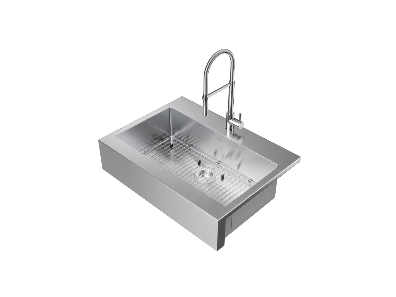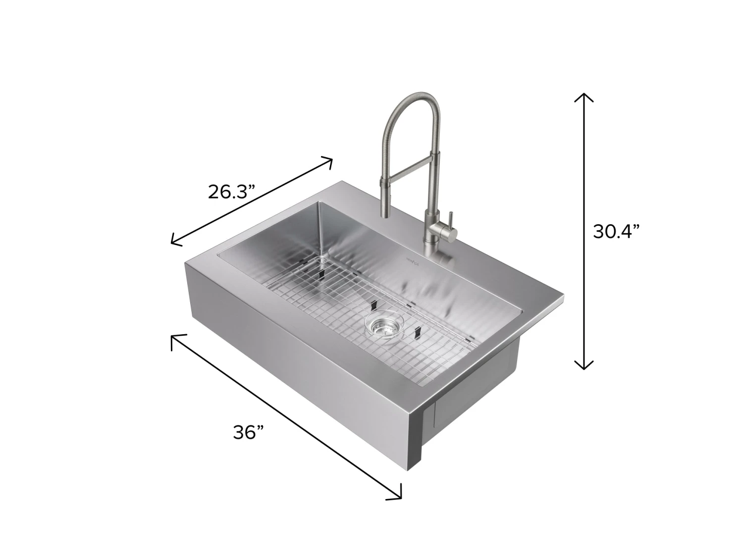 With its traditional, our 36 in. Farmhouse Sink is effortlessly versatile, coordinating seamlessly with almost any style of home décor. Designed for easy installation, it simply drops down into your cabinet. The deep, wide 36 in. size is ideal for busy homes with room for multiple pots and pans. Integrated sound dampening helps make clean up more pleasant, while the premium 16 gauge 304 stainless steel construction ensures outstanding corrosion resistance and years of easy-clean performance. This comes with a sink grid included for added protection. The Flex Pull-Down Faucet provides optimal control, with an easy-to-use pulldown spray wand that rotates 360 degrees and makes light work of hard-to-clean dishes with a a maximum flow rate of 1.8 gallons per minute. The ceramic disc cartridge prevents leaks when the faucet is turned off, while single lever operation provides precision temperature control. Made from lead-free brass, this faucet is low maintenance and easy to wipe clean after use. Available in your choice of a brushed nickel or chrome finish, the contemporary curved design is a showpiece for any kitchen. Enjoy it in your home with the confidence of a limited lifetime warranty.