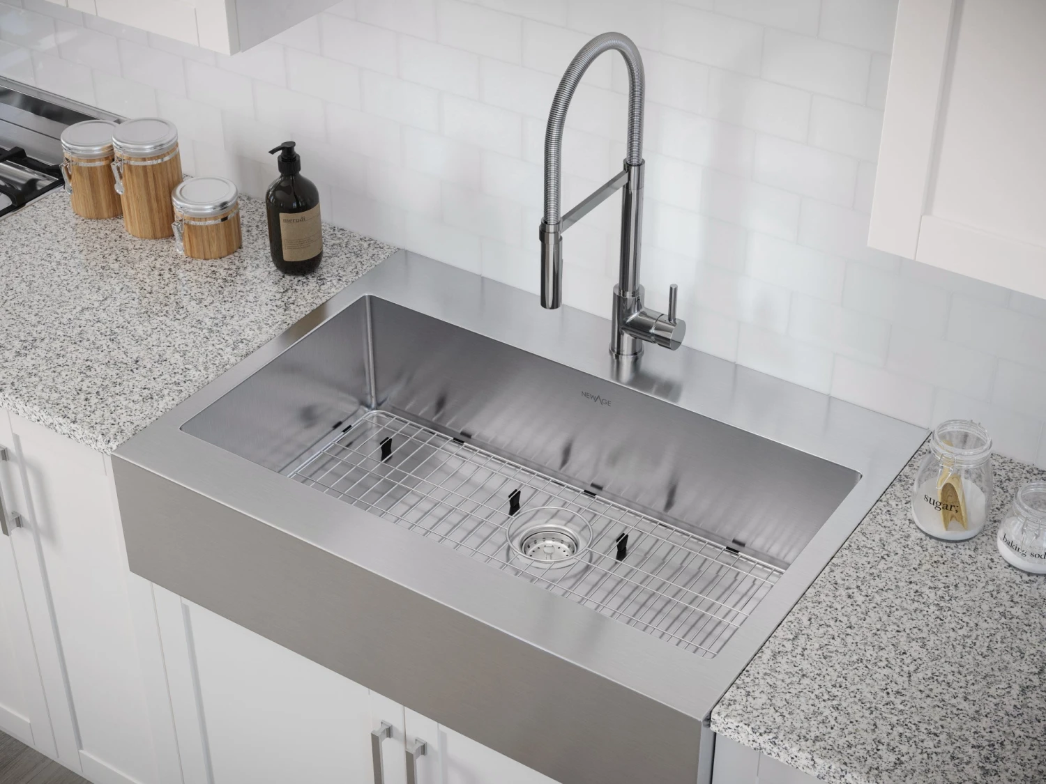 - 1 x 36 in. Farmhouse Sink with Flex Pull Down Faucet
