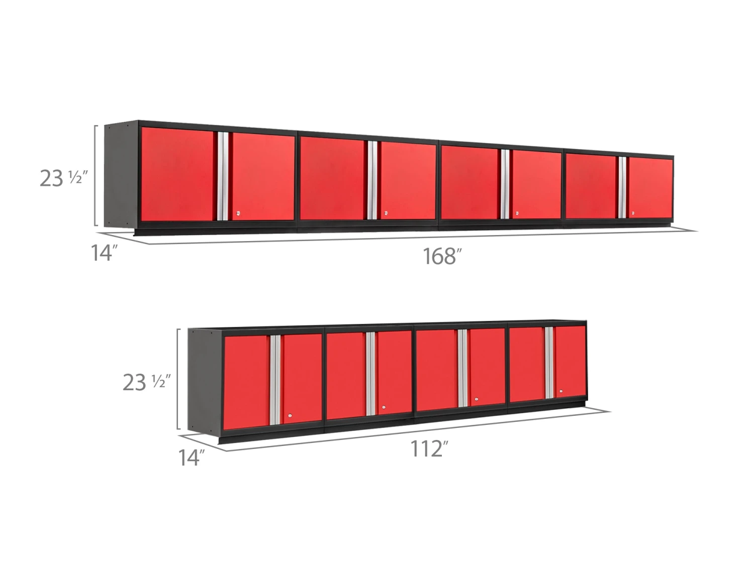Get more out of your garage with NewAge Products Pro Series collection of storage solutions, engineered for strength, and designed with the premium features and modern look of a garage showroom. Designed to get your gear up and off the ground, Pro Series Wall Cabinets allow you to make the most of your wall storage space with a spacious interior that gives you plenty of space to safely store up to 200 lbs. of gear per cabinet. With a fully-welded steel frame and double-walled lockable doors, Pro Series Wall Cabinets ship ready for work, and include quick-install wall brackets for an easier installation. The durable paint finish prevents scratching, while the included valance allows you to hide optional LED lights and keep cables neatly tucked away. (LED Lighting sold separately) Our 42 in. Wide Wall Cabinets install perfectly next to standard sized Wall cabinets, giving you options for storing items of different sizes, while keeping a color-matched, streamlined look. NewAge Products Pro Series collection is the ideal all-in-one solution to your garage organization needs.
