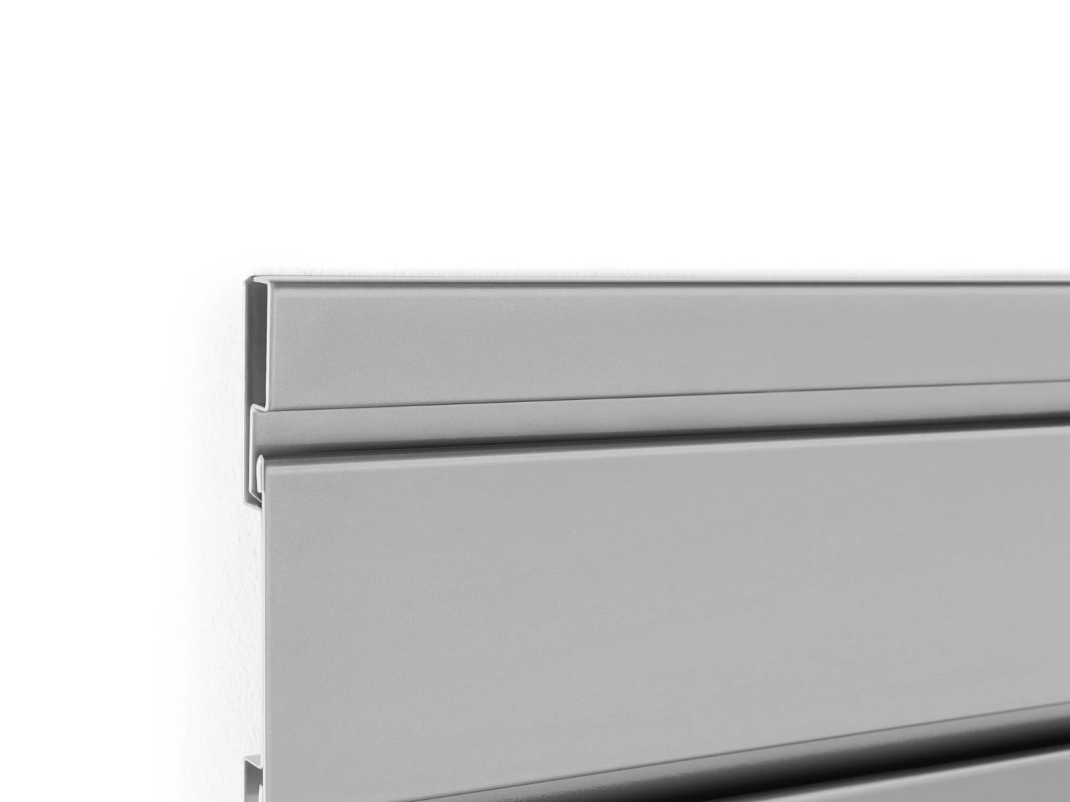 Accessorize your cabinet set for even more functionality, with the High-Gloss Silver Slatwall Backsplash. Built with high-strength steel for a superior look and feel, the Slatwall Backsplash visually takes your cabinet set to the next level, while offering a easy-to-clean backing for your workspace. Precision fit for use with NewAge Products Bold Series 3.0 and Performance Series 2.0 cabinets, the Slatwall Backsplash spans perfectly across base cabinets, fitting snugly between your worktop and wall cabinets. Hidden fasteners allow for a quick installation and cover the screw holes for a seamless, streamlined finish. A magnetic finishing strip easily snaps to the top panel to complete the flawless look. The high-gloss powder coat paint finish protects from rust, and is easily wiped clean of dirt, dust and oil. Add more utility and style to your workspace, with the High-Gloss Silver Slatwall Backsplash.