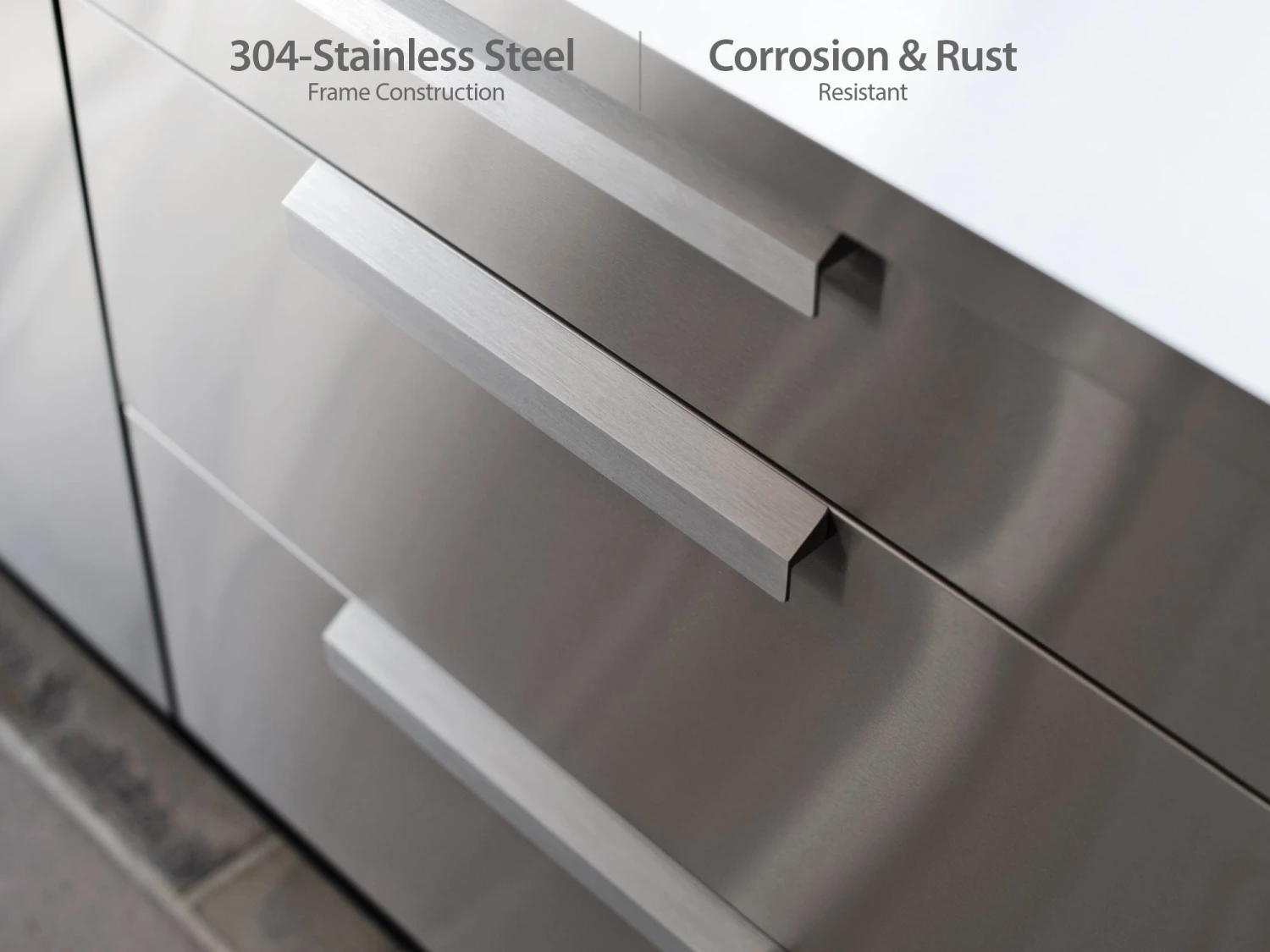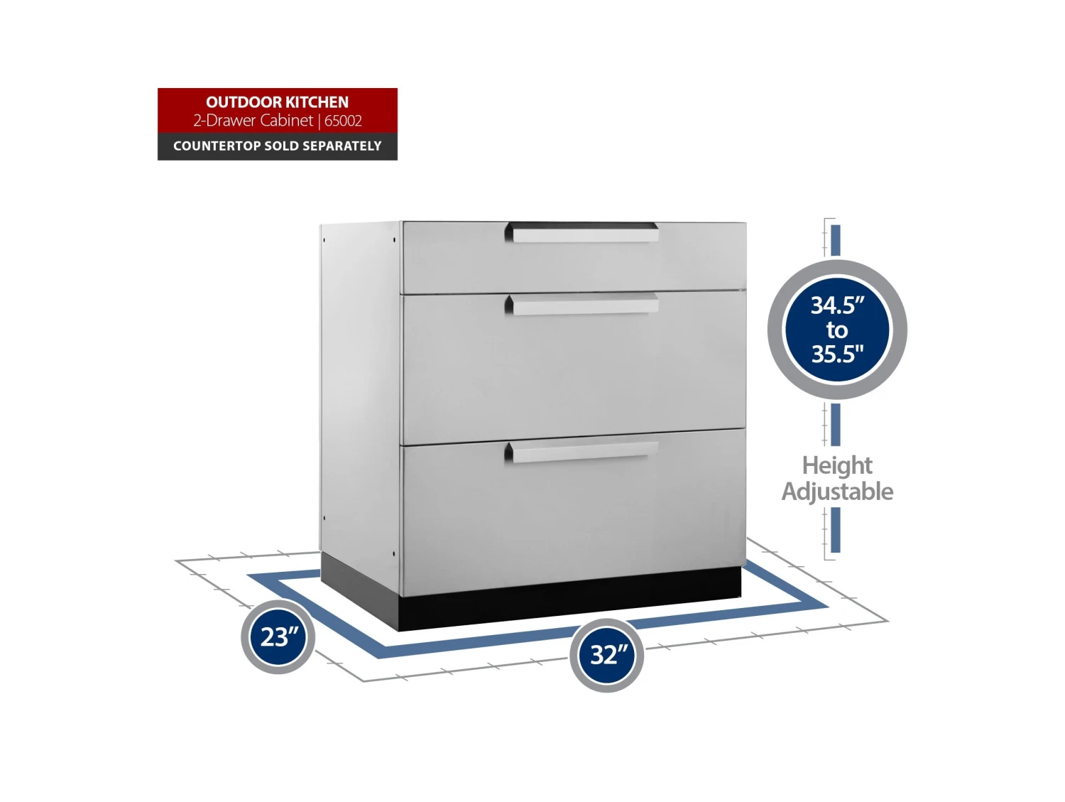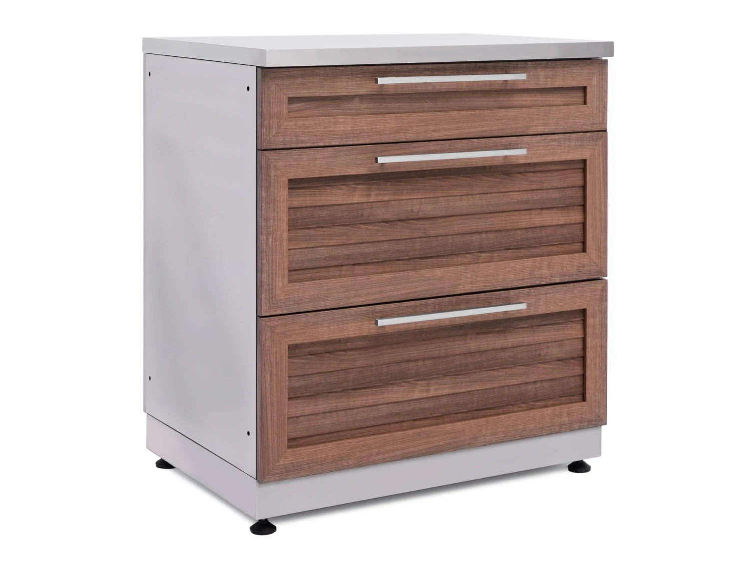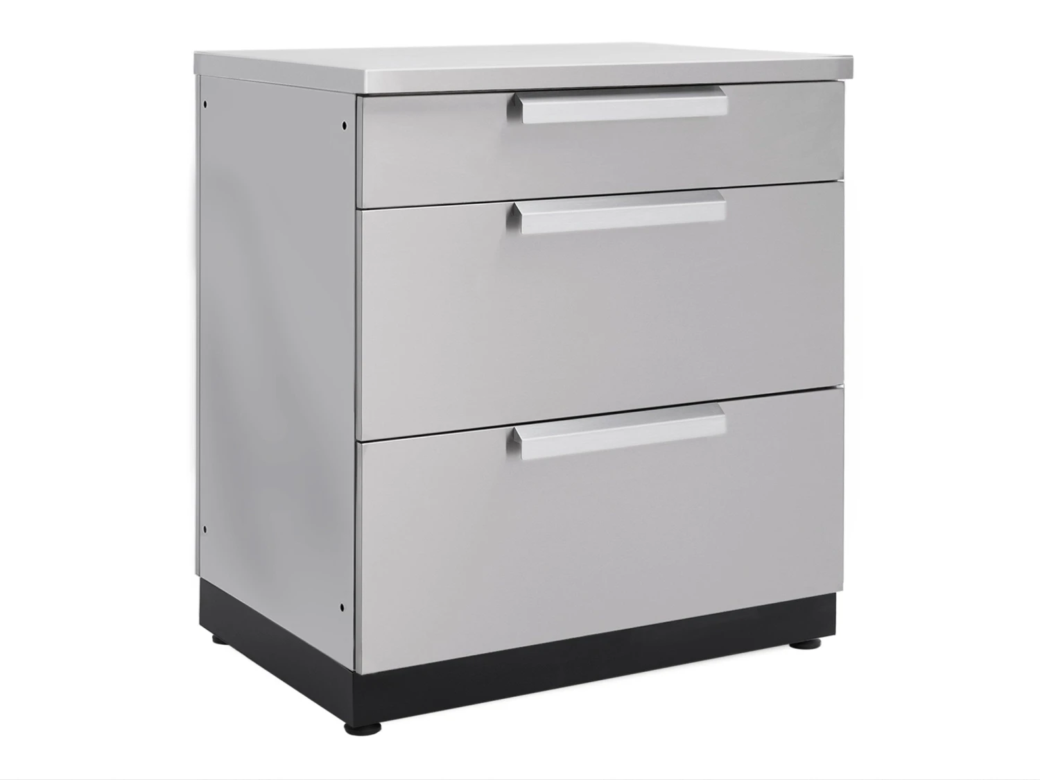 The Outdoor Kitchen 3-Drawer Cabinet gives you the convenient storage space you need for organizing hosting supplies, games and toys, and serving utensils. The fully assembled cabinet is built with 304 stainless steel for supporting heavy weights, and can easily handle stacks of dishes, bags of charcoal for grilling, and anything else you can throw at it. Two extra deep drawers, on soft-close drawer slides, smoothly open to full-extension for completely accessible space, and easy-grip handles provide quick drawer access even when your hands are full. The top drawer includes adjustable stainless steel dividers for separating cutlery and utensils, and easily organizing small items like skewers and BBQ lighters. For the convenience of a stocked kitchen, right in your backyard, the NewAge Products 3-Drawer Cabinet is your ultimate storage solution.