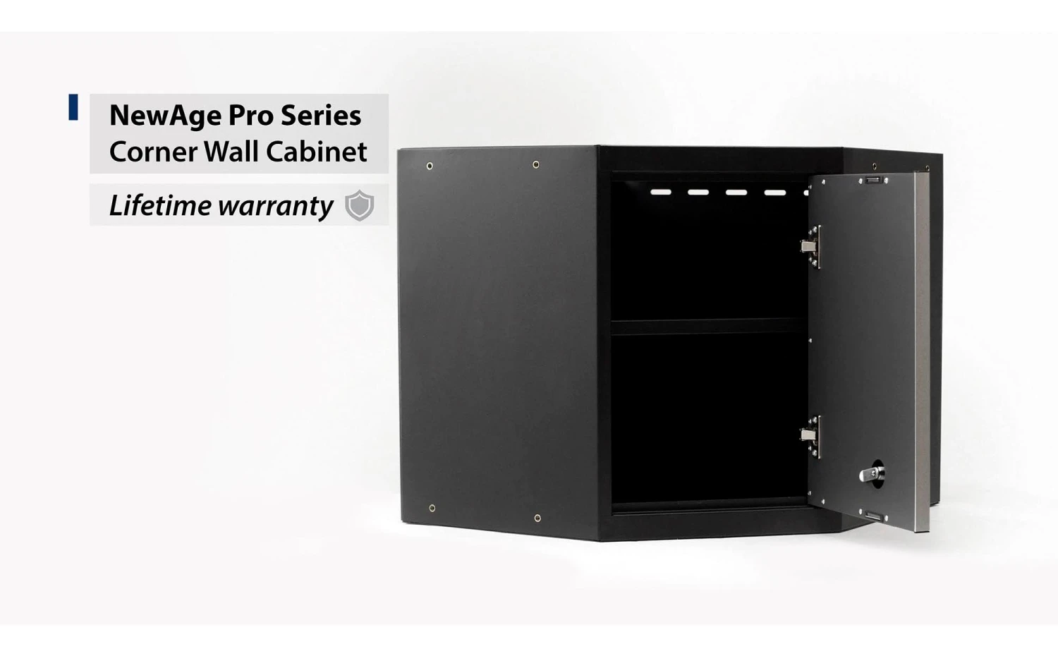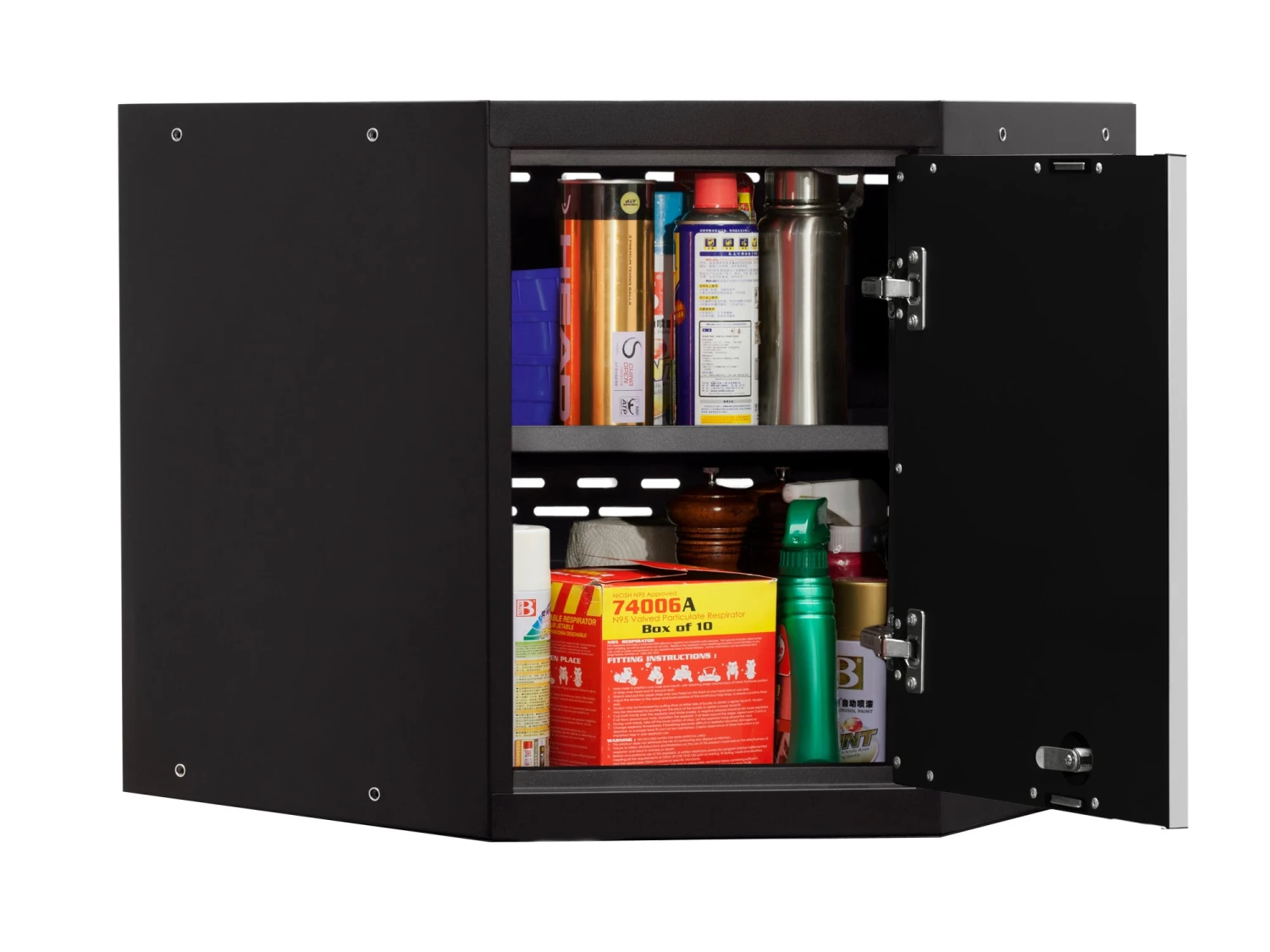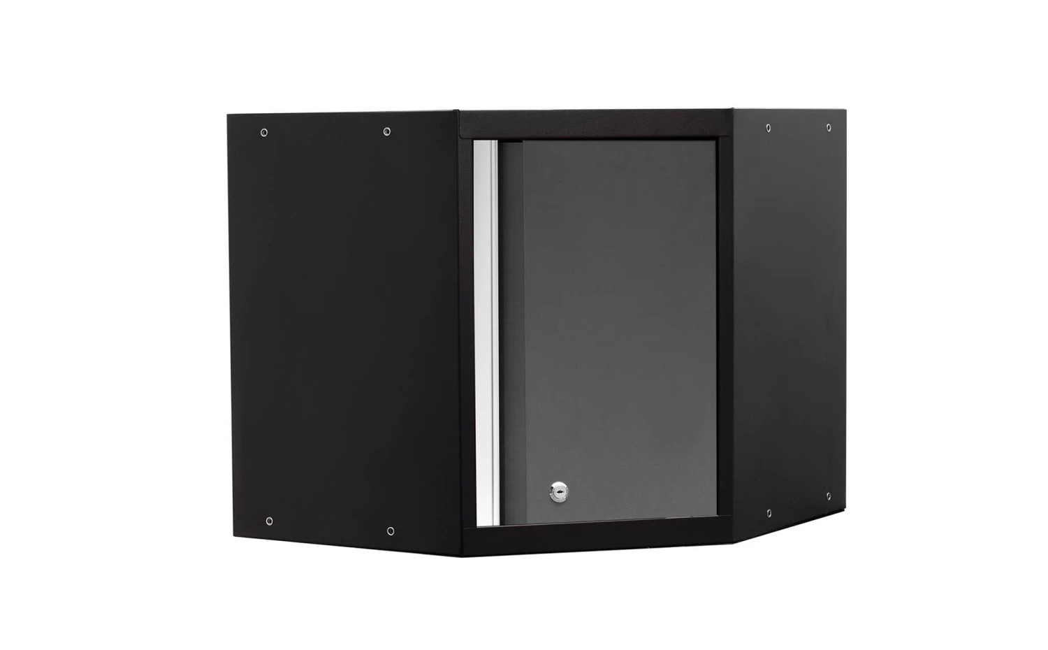 The Pro Series 3.0 Corner Wall Cabinet provides a seamless storage solution for an often unused corner space in your garage, while integrated handles make it easy to access your items. The Corner Wall Cabinet comes complete with a durable powder-coat paint finish, and works to prevent scratching.
