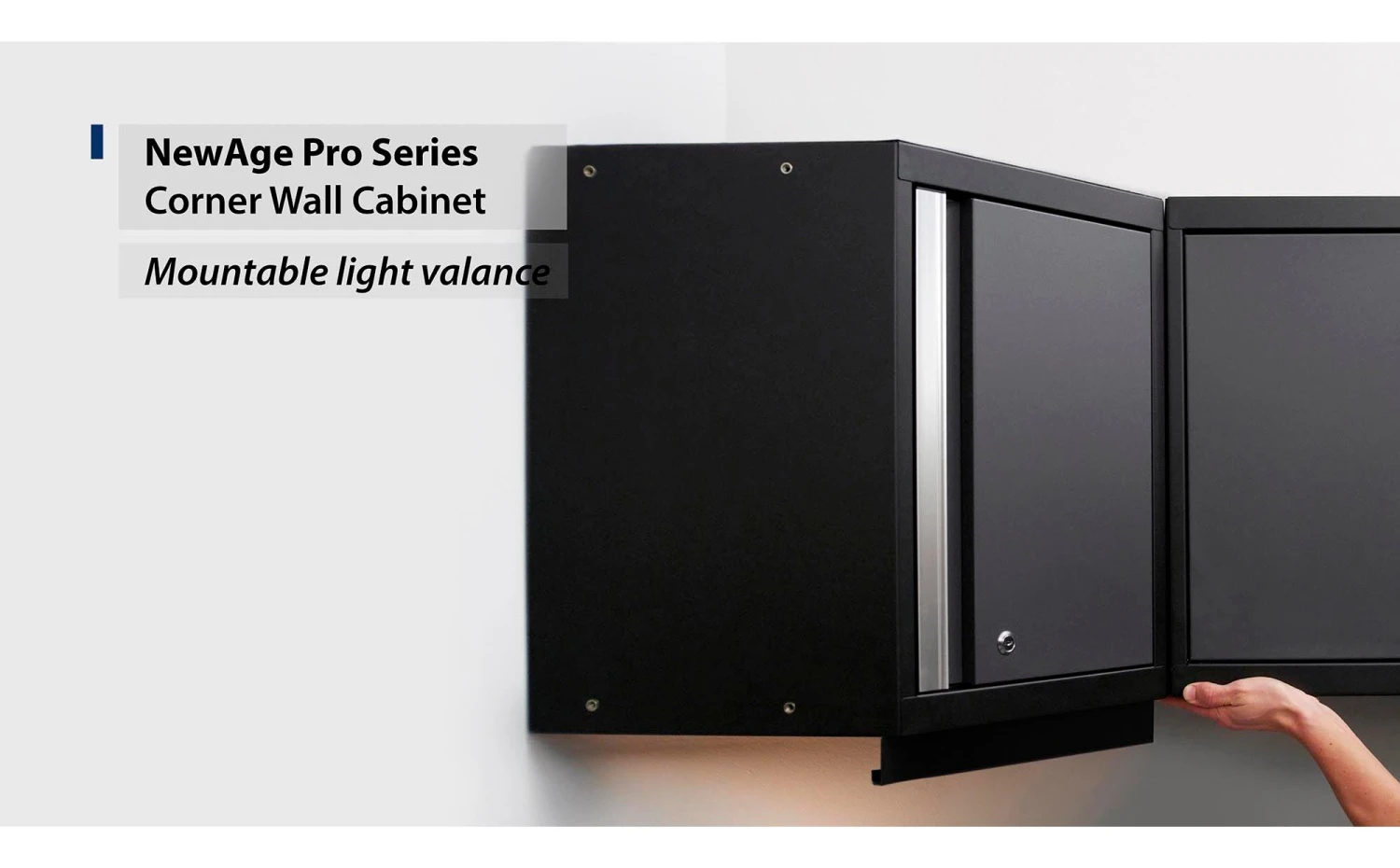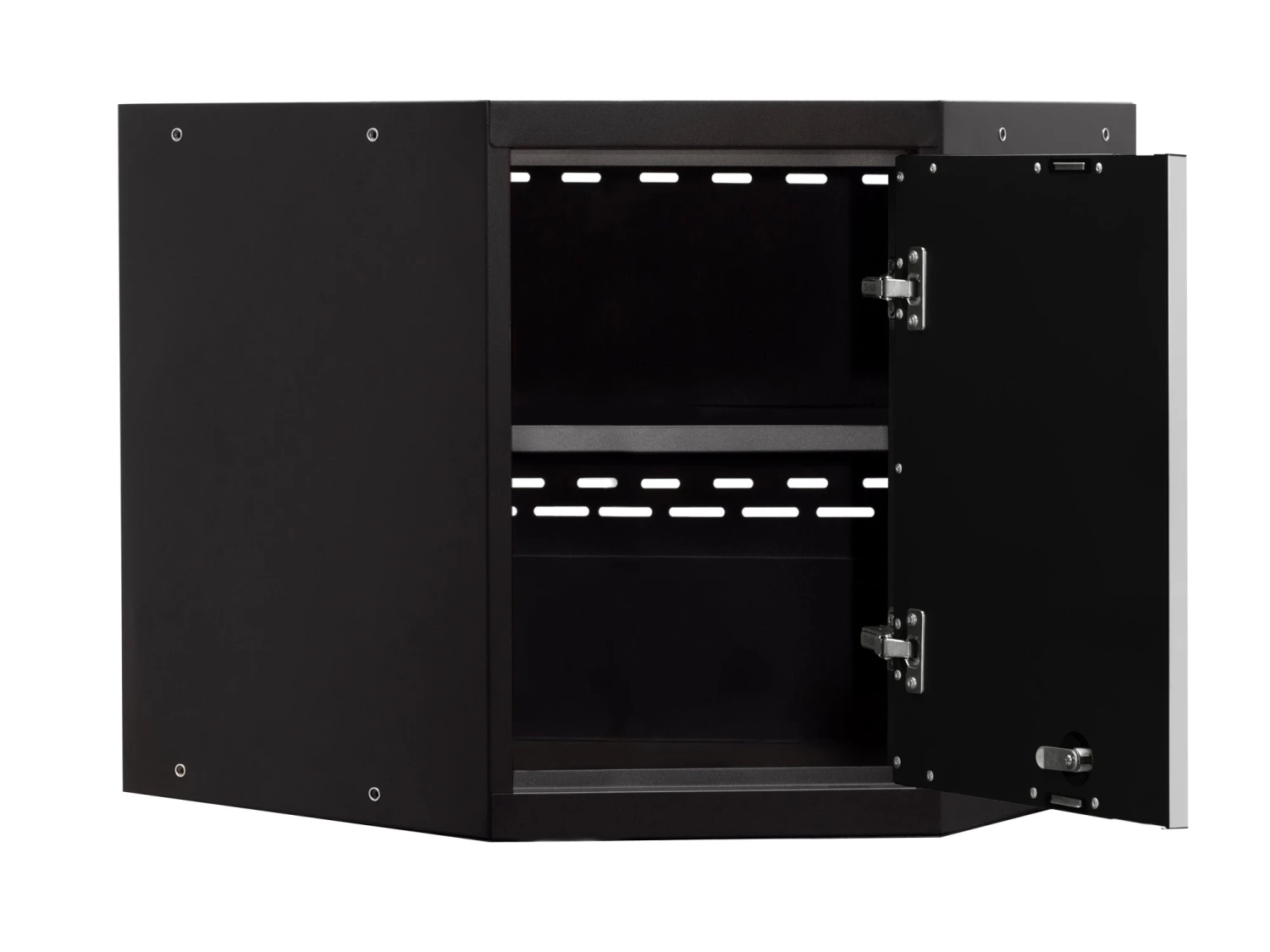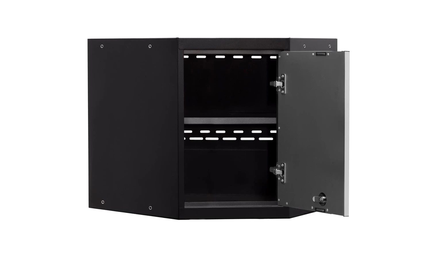 The Pro Series 3.0 Corner Wall Cabinet provides a seamless storage solution for an often unused corner space in your garage, while integrated handles make it easy to access your items. The Corner Wall Cabinet comes complete with a durable powder-coat paint finish, and works to prevent scratching.